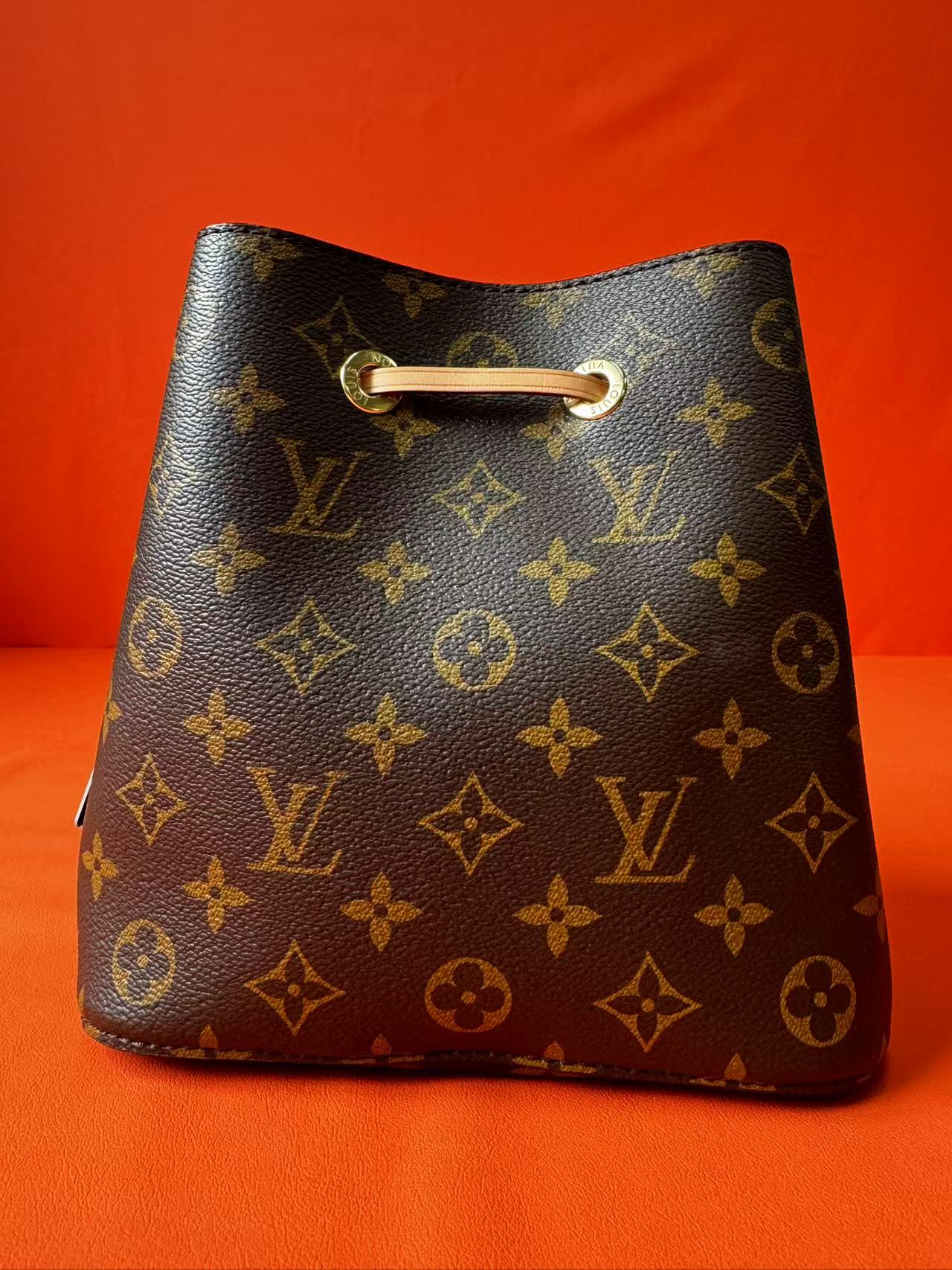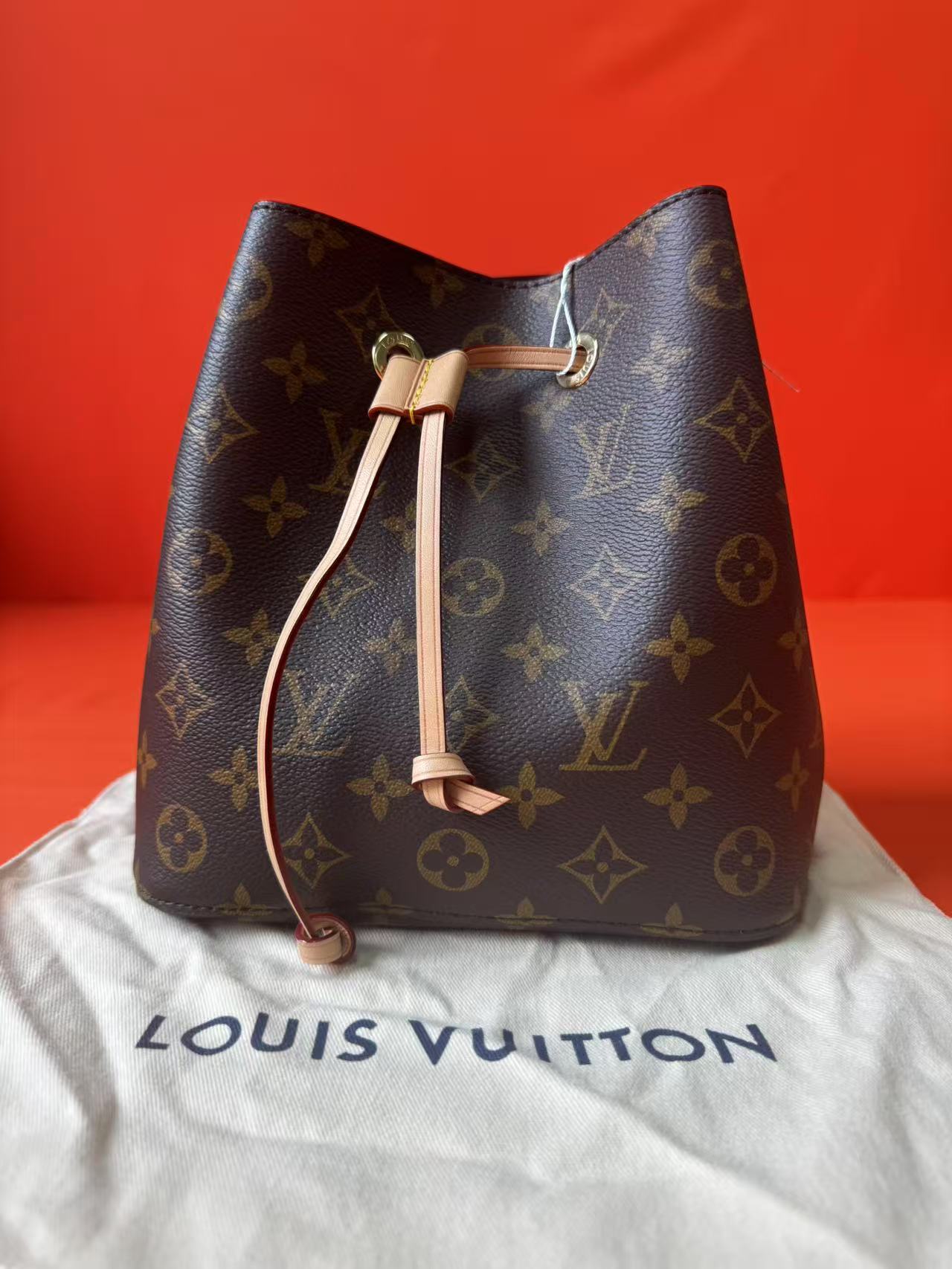 LOUIS VUITTON NÉONOÉ BB 可拆卸可调节肩带老花满印 涂层帆布拼牛皮革 水桶包斜挎手提包 小号 女款 棕色