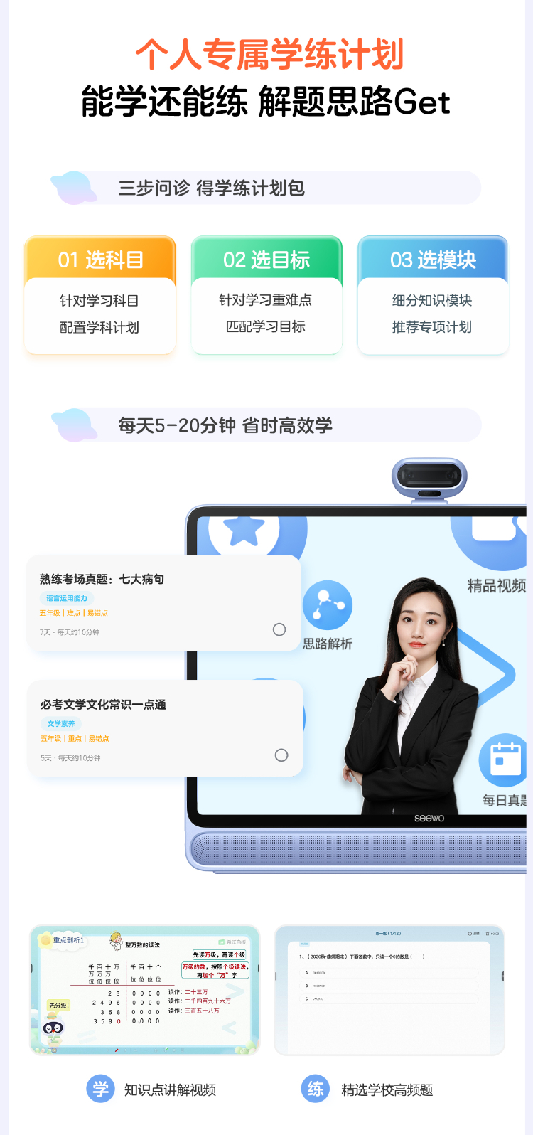 希沃护眼学习平板V20 AI学习机 学练机 早教机