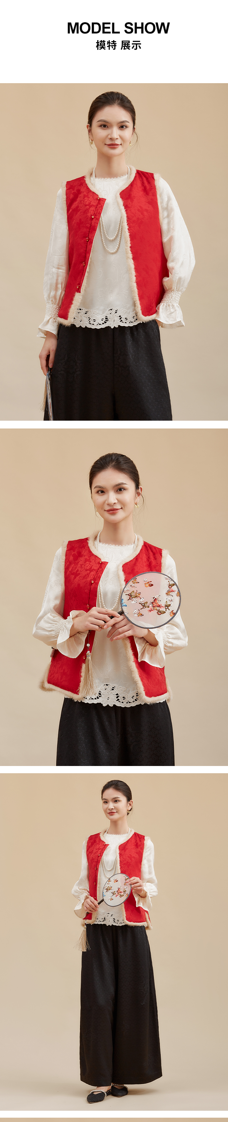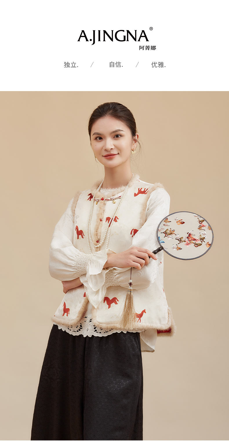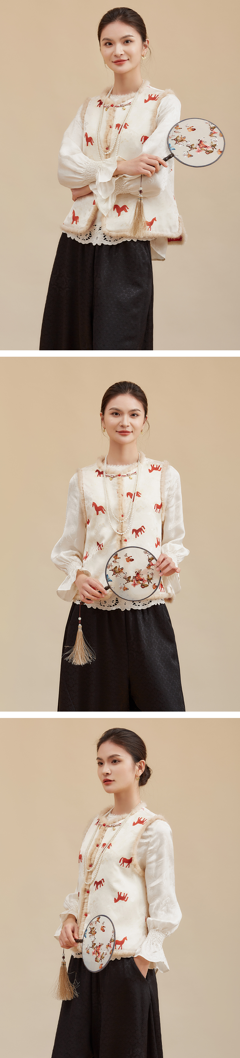 【淘衣节专享】阿菁娜冬季新款软糯水貂毛马甲两面穿童趣印花节日氛围感保暖叠穿内搭F30D203018