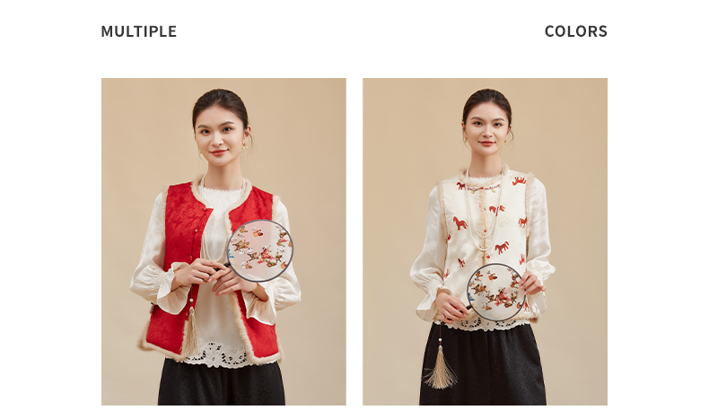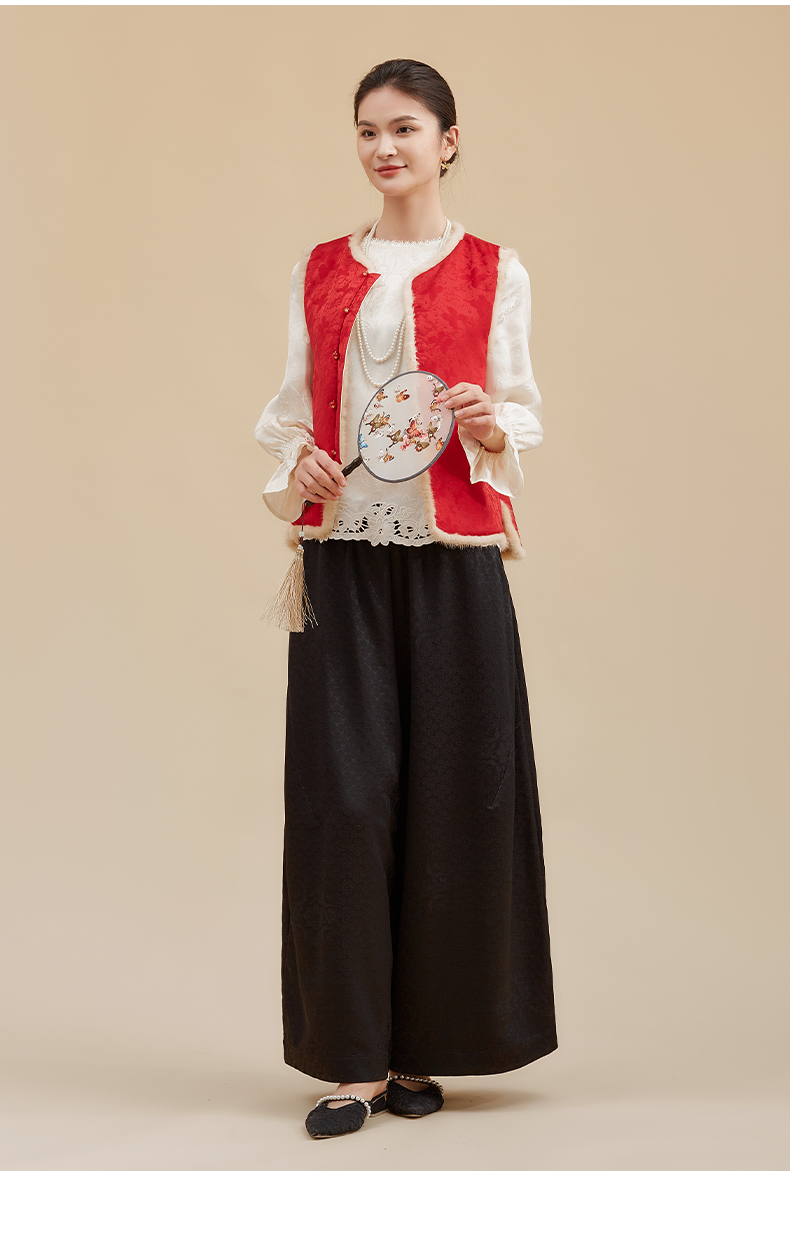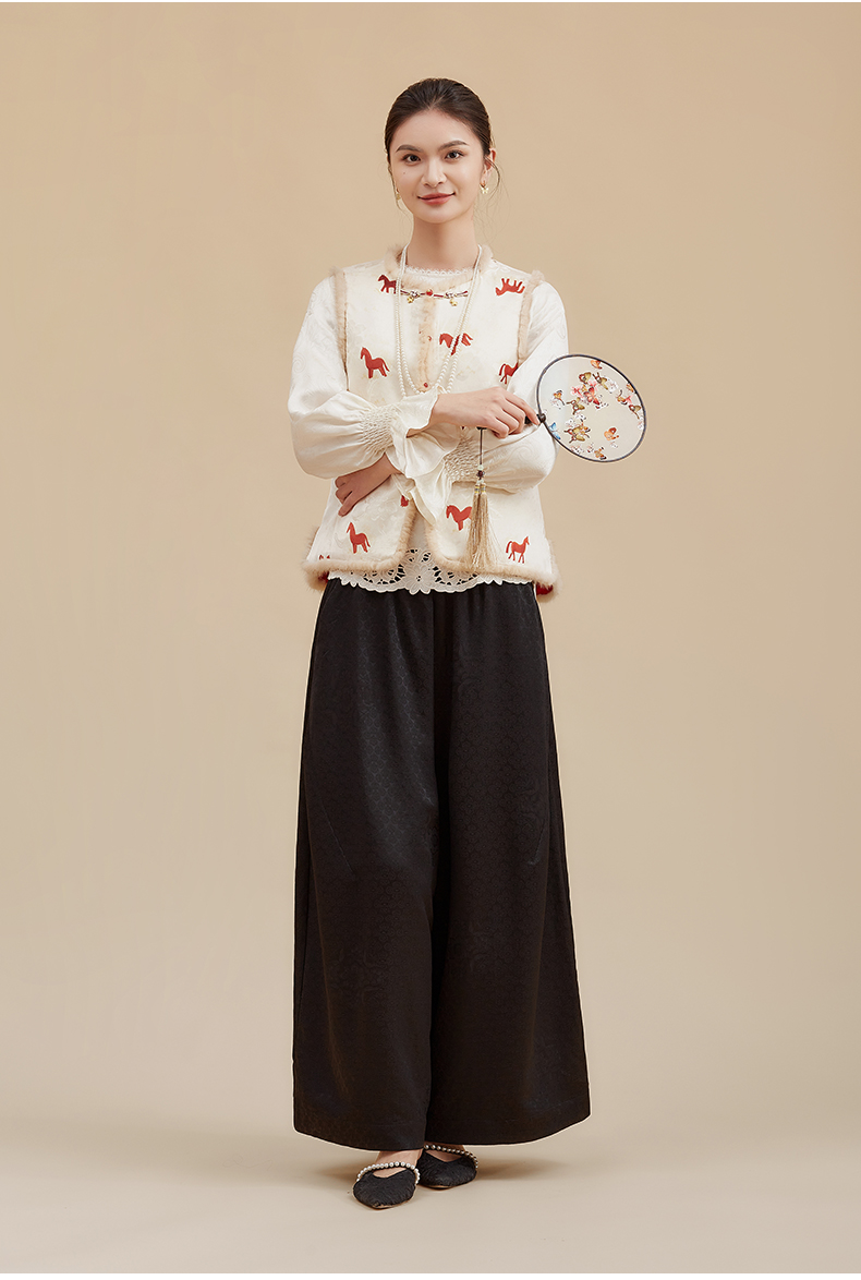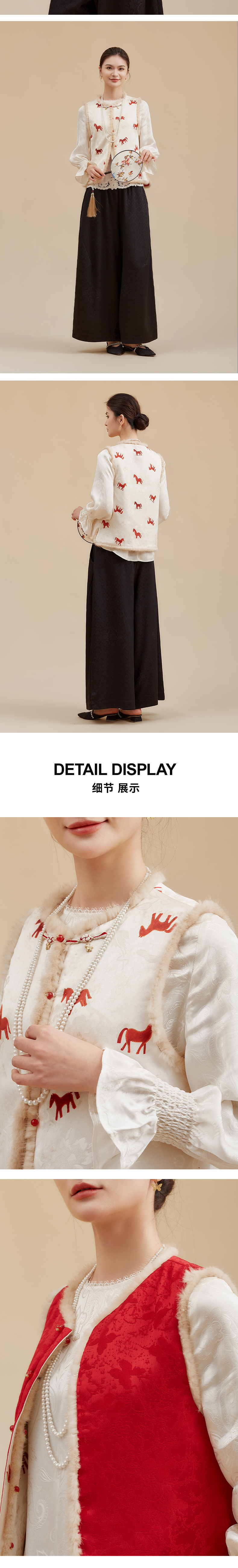 【淘衣节专享】阿菁娜冬季新款软糯水貂毛马甲两面穿童趣印花节日氛围感保暖叠穿内搭F30D203018