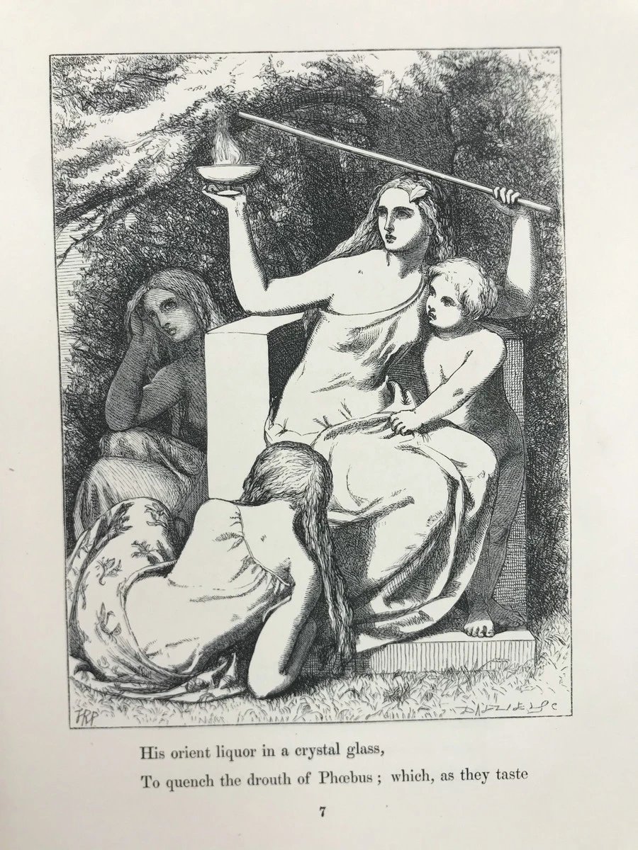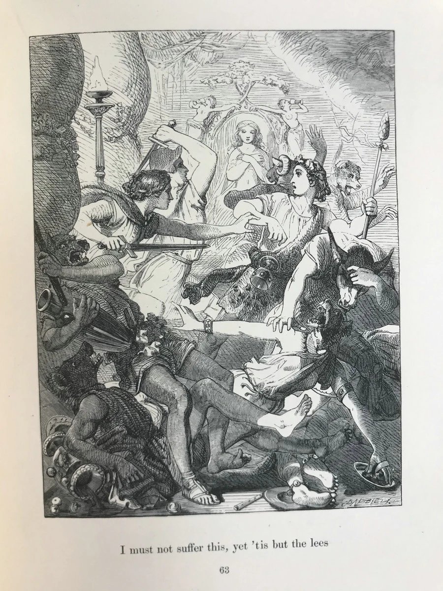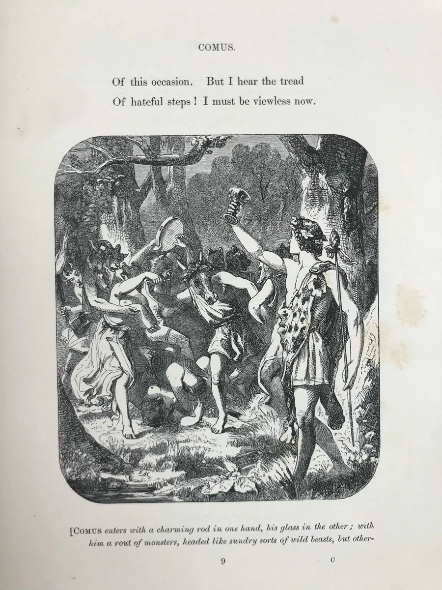 1858年 弥尔顿《酒神之假面舞会》 福斯特等艺术家30幅丹泽尔兄弟雕版版画插图 漆布精装32开