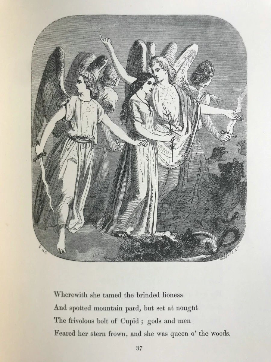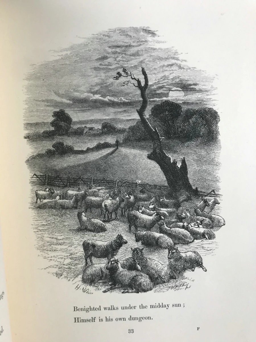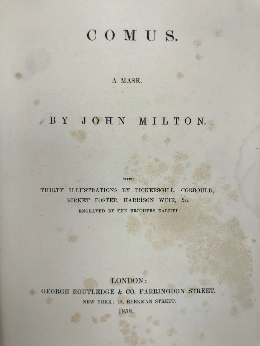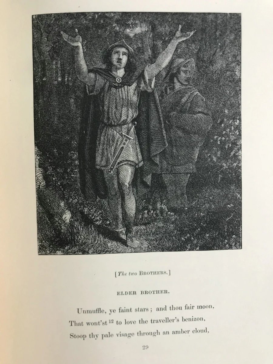 1858年 弥尔顿《酒神之假面舞会》 福斯特等艺术家30幅丹泽尔兄弟雕版版画插图 漆布精装32开