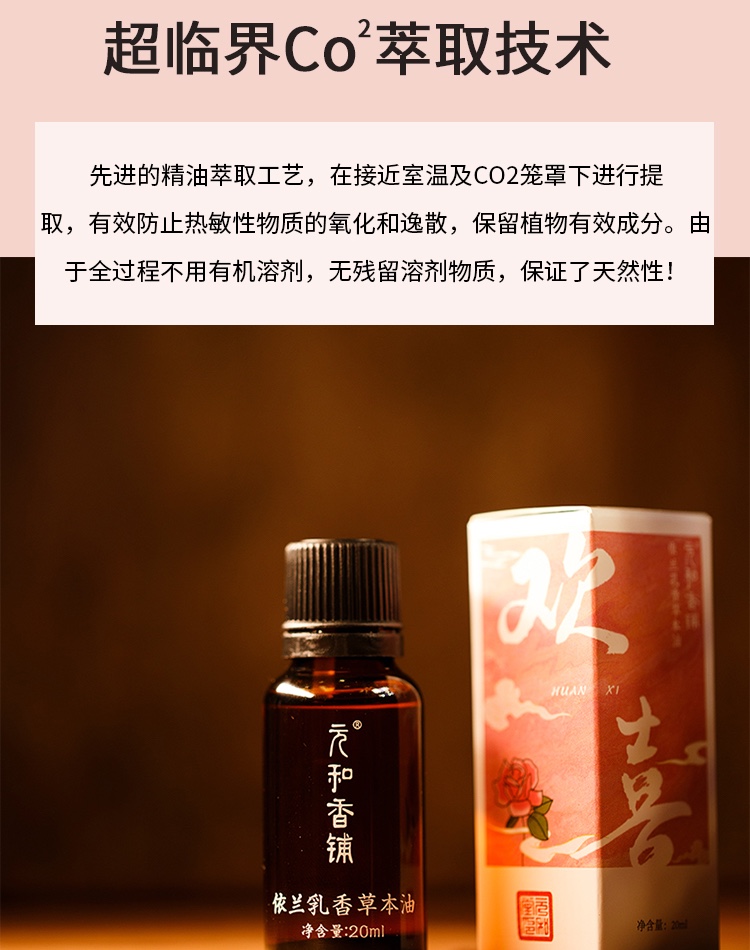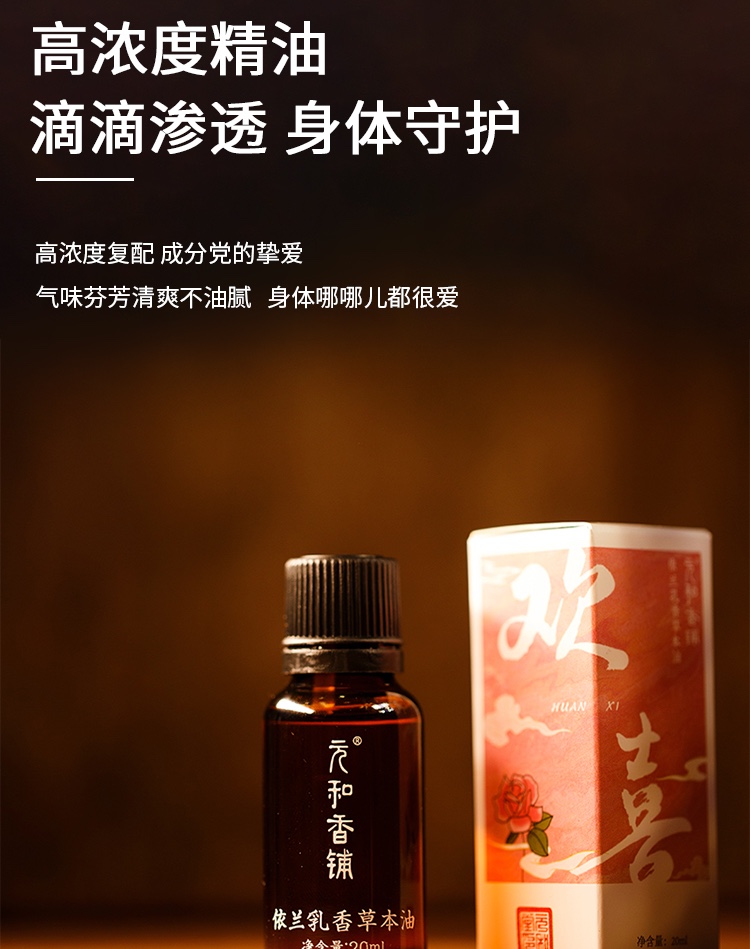 「欢喜精油」20ml/瓶 | 依兰乳香草本复方精油香薰全身经络推拿按摩泡脚通用油 | 气郁血瘀放松养生 | 元和好物迷罗亲研