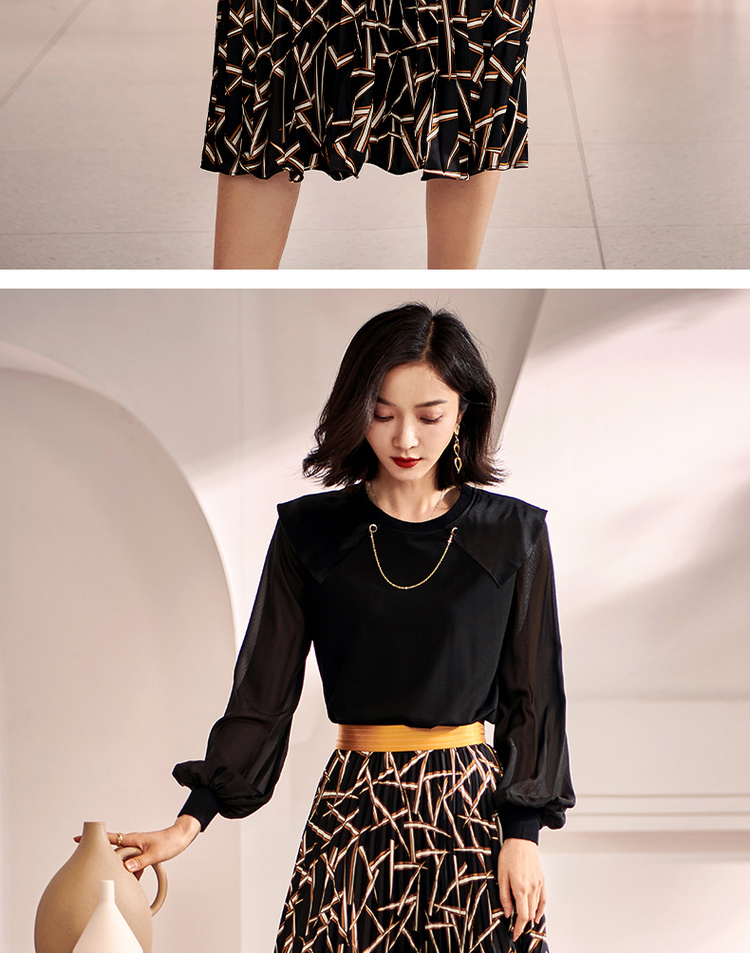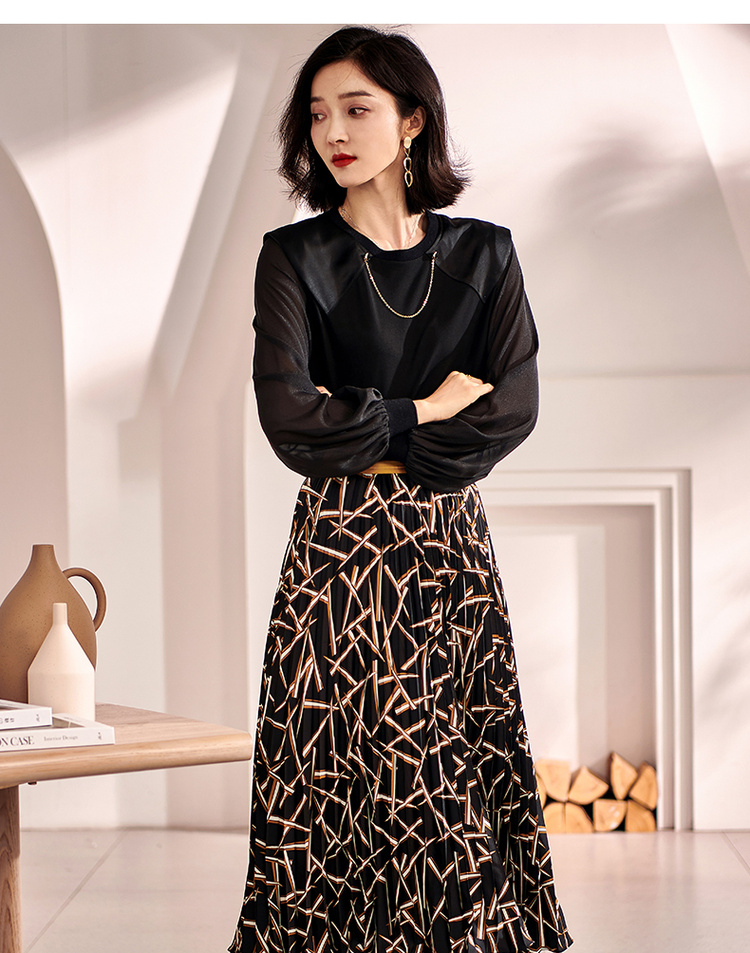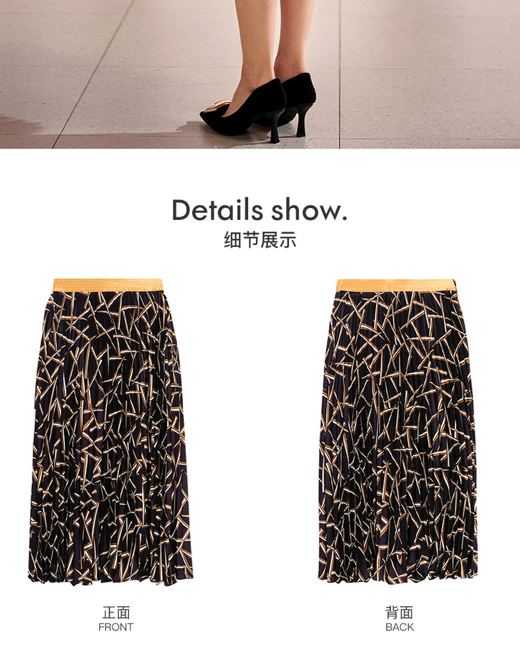 剩S/M/L 米思阳2026春季新款复古优雅印花醋酸拼接高腰显瘦百褶半身裙0485