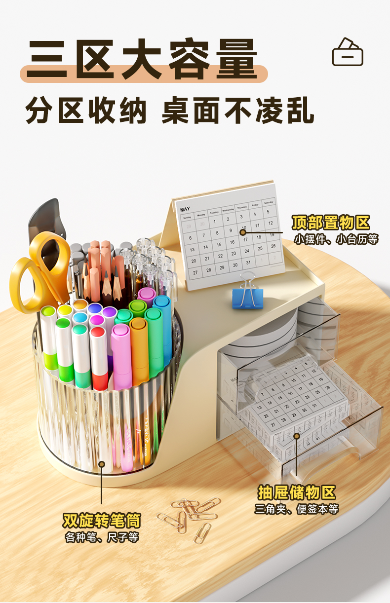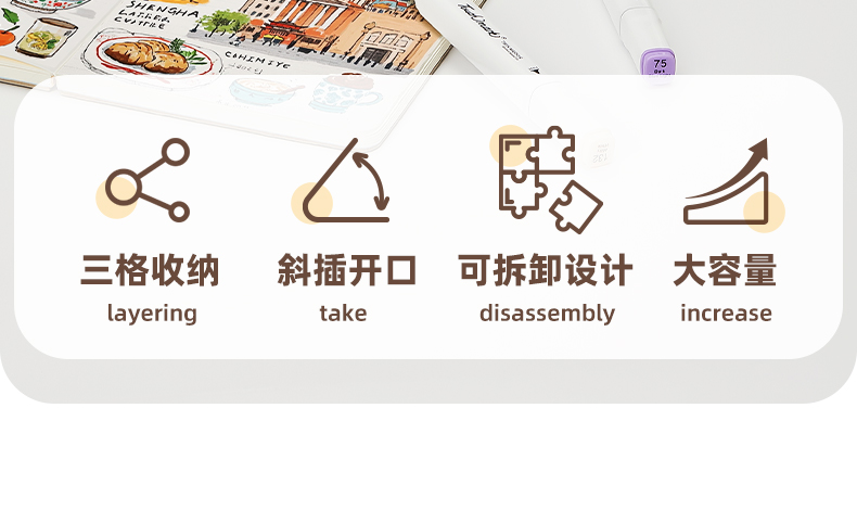 Touchmark马克笔收纳架斜插式笔筒大容量文具收纳盒收纳盒学生笔桶儿童书桌笔盒办公室桌面笔架化妆品收纳架