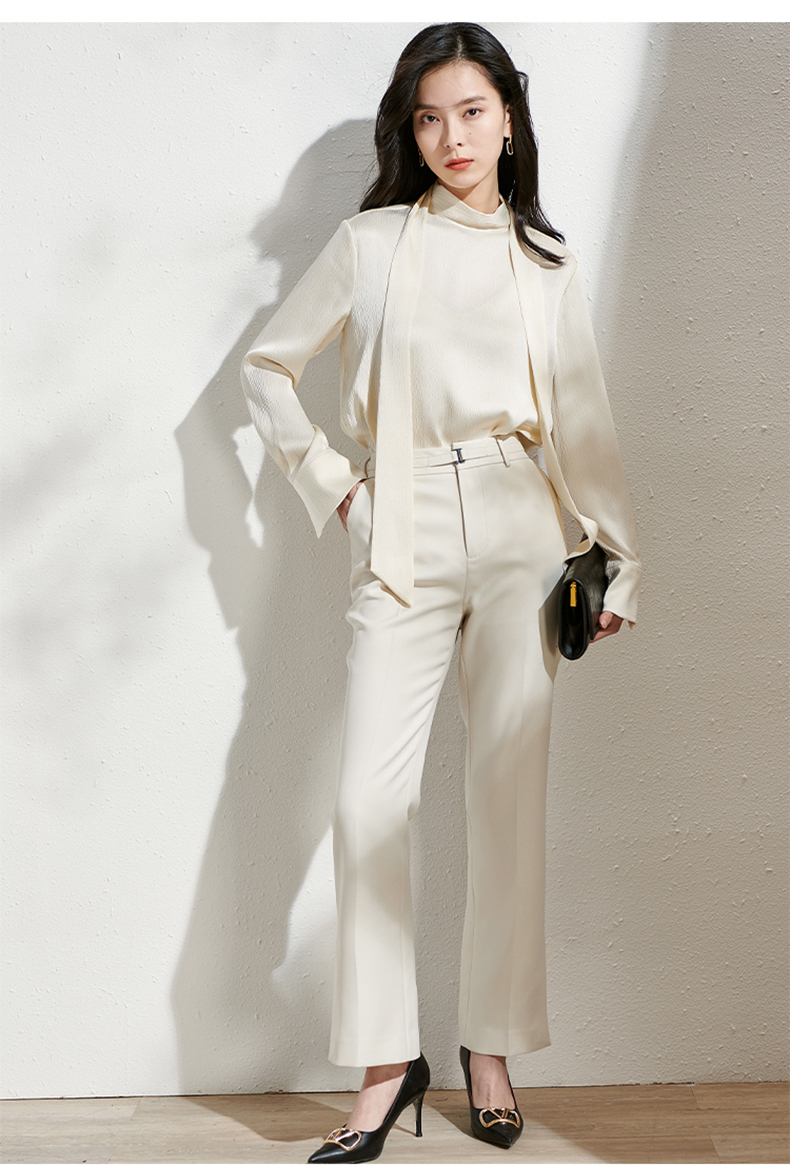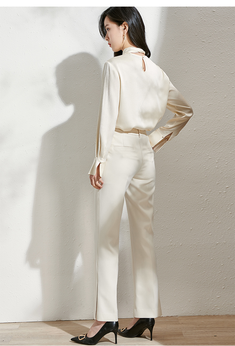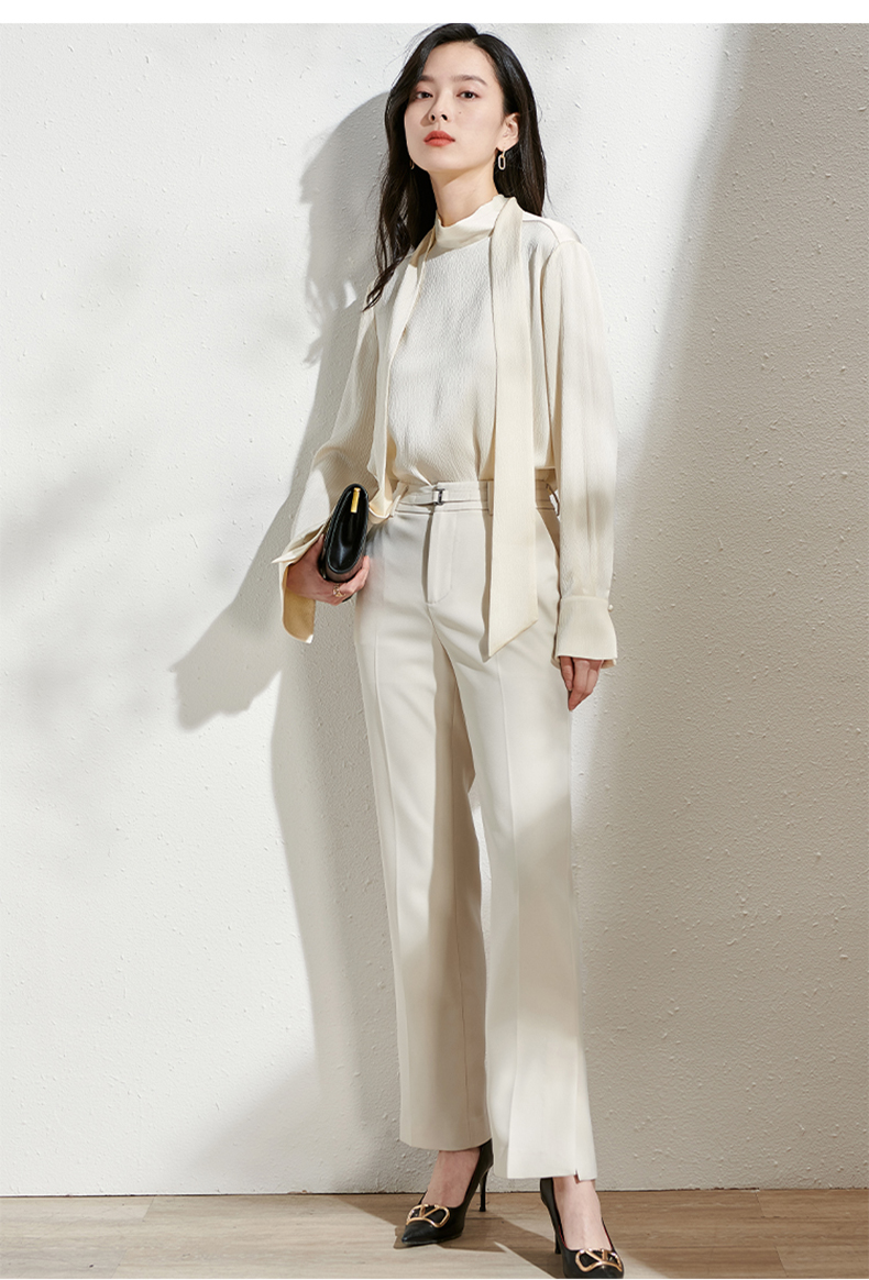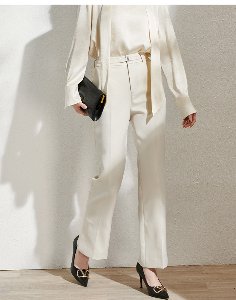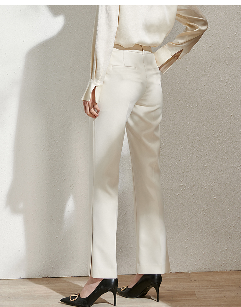 芳外春季新款百搭通勤微喇休闲裤显瘦米白色垂感西装裤女0081