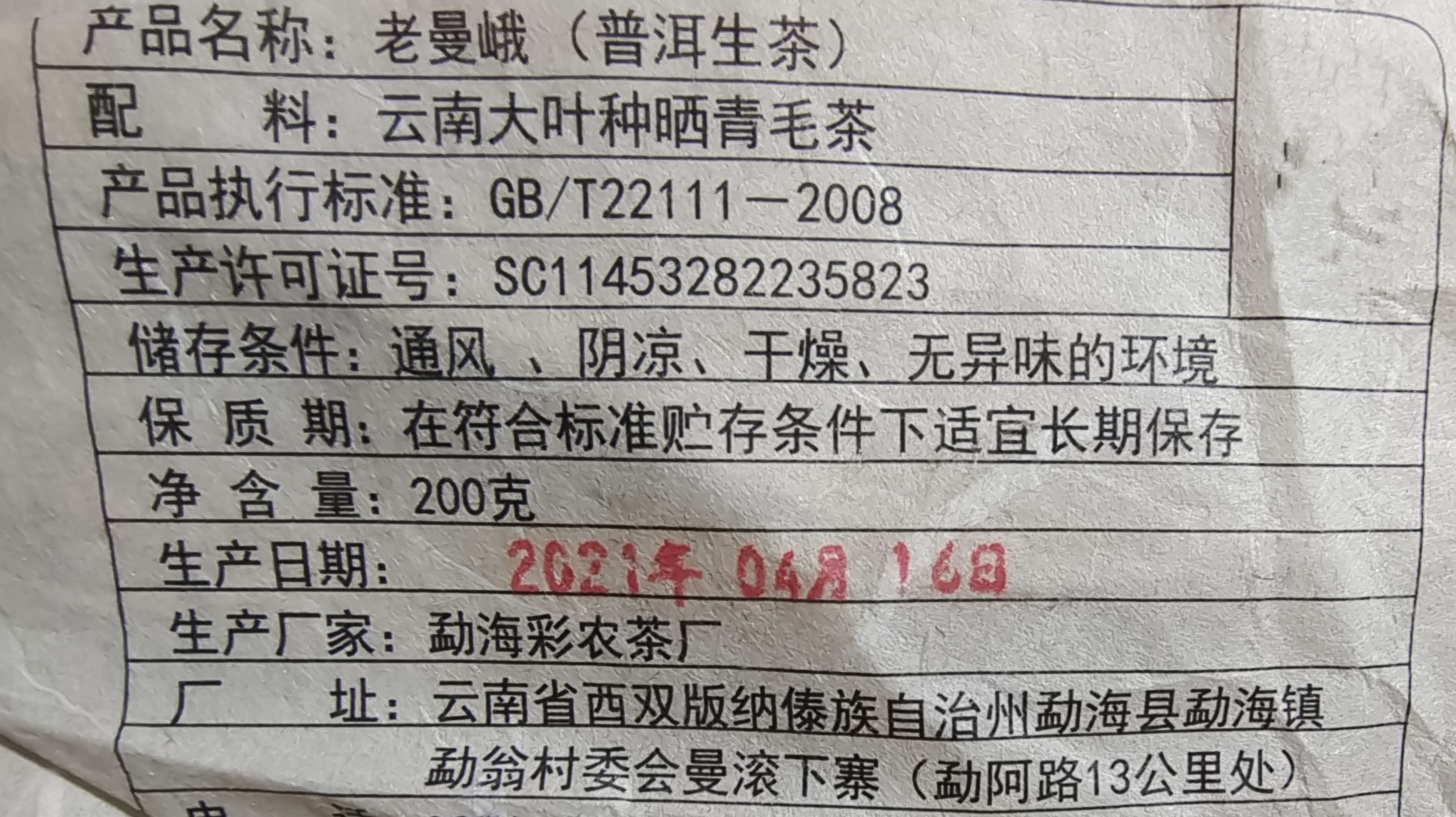 彩农茶|老曼峨2021春古树纯料青饼