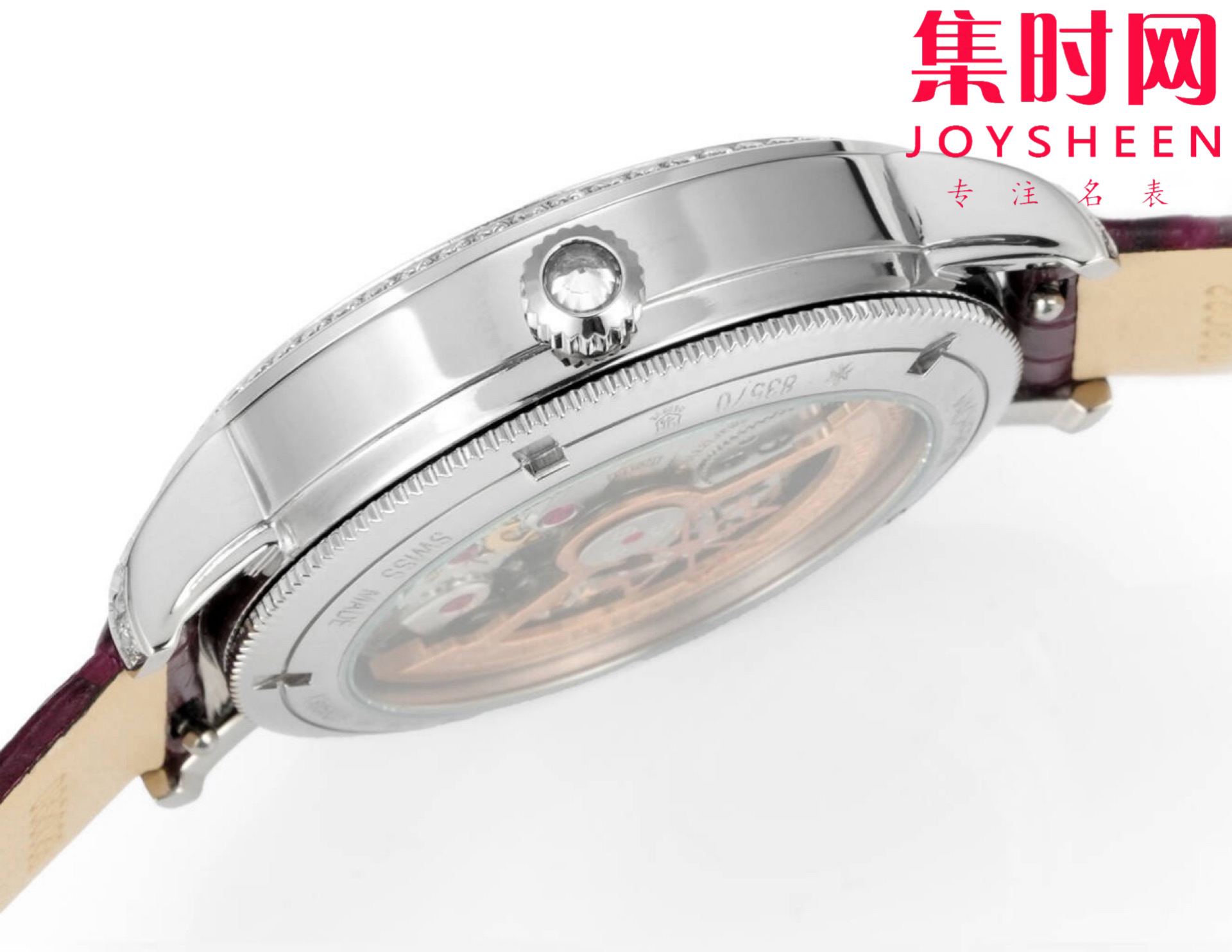 圆形白金表壳,表圈、表耳和表冠镶嵌了总重约1.2克拉的81颗美钻