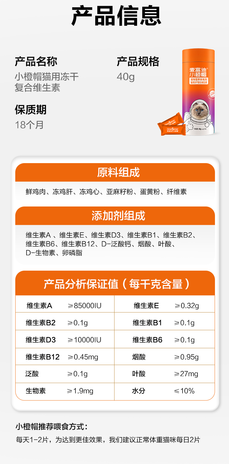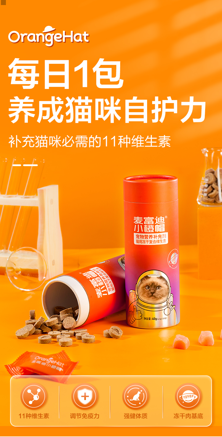 麦富迪小橙帽冻干复合维生素片猫咪维生素补充微量元素营养品40g