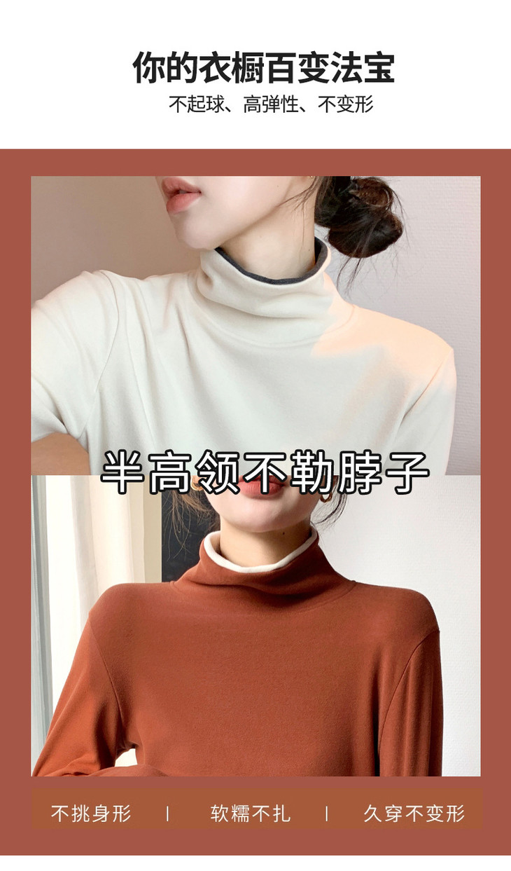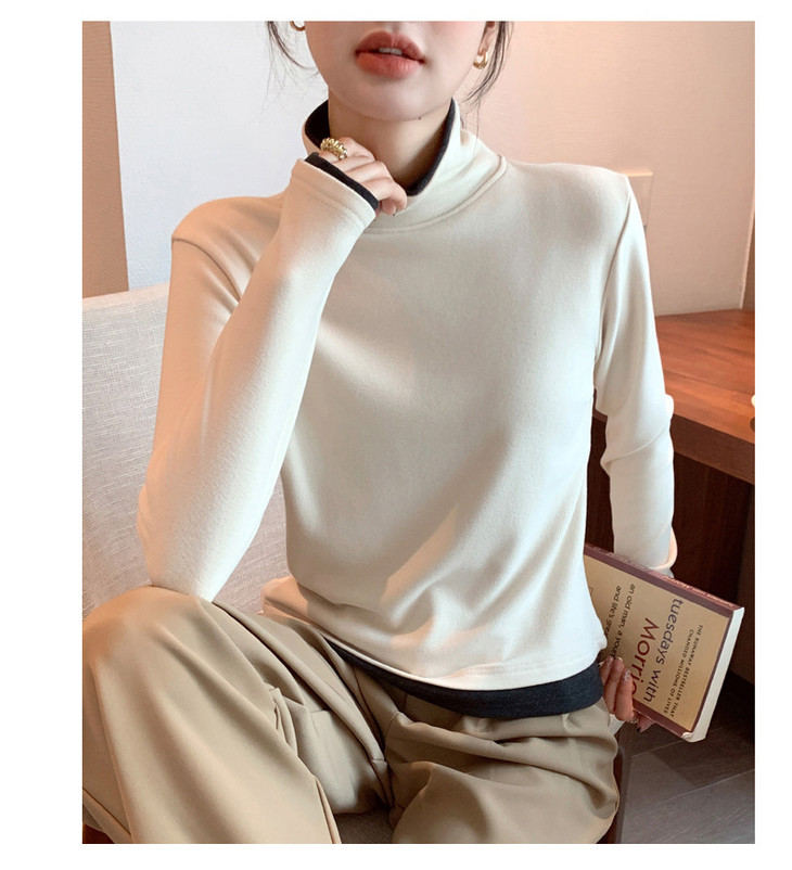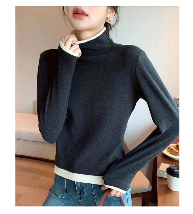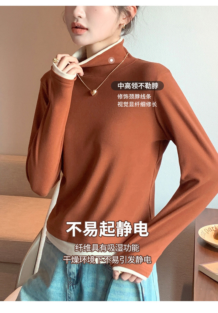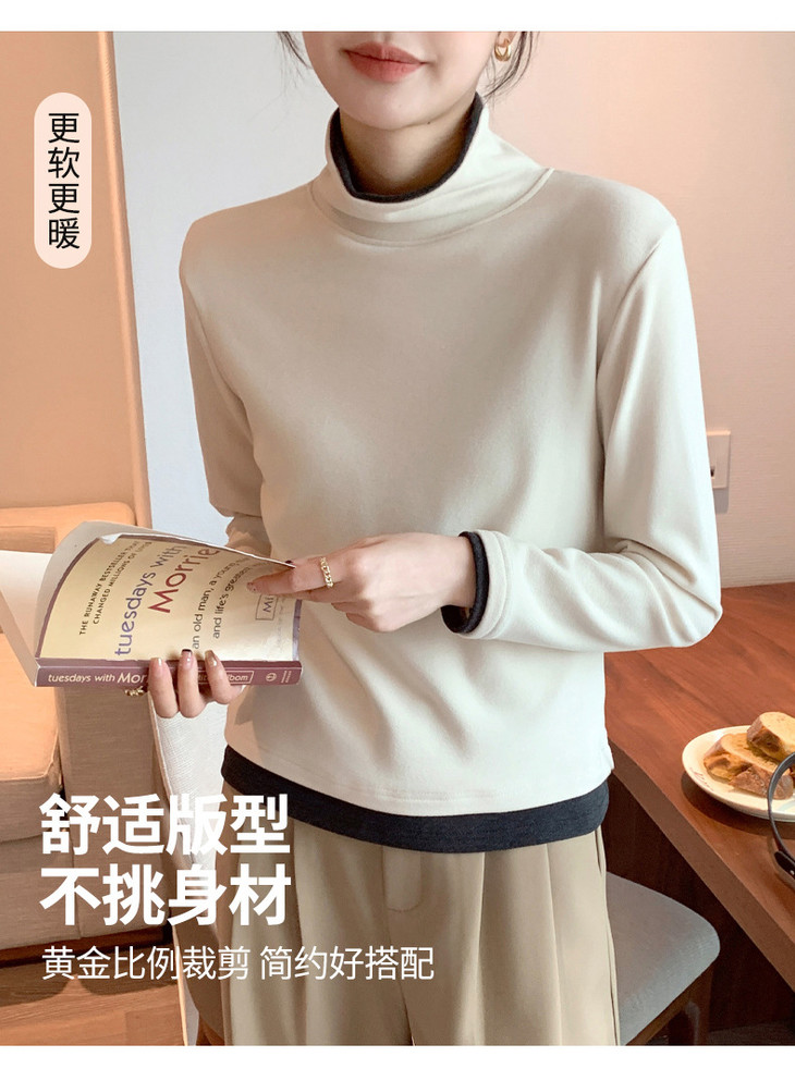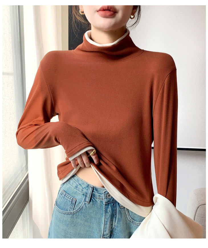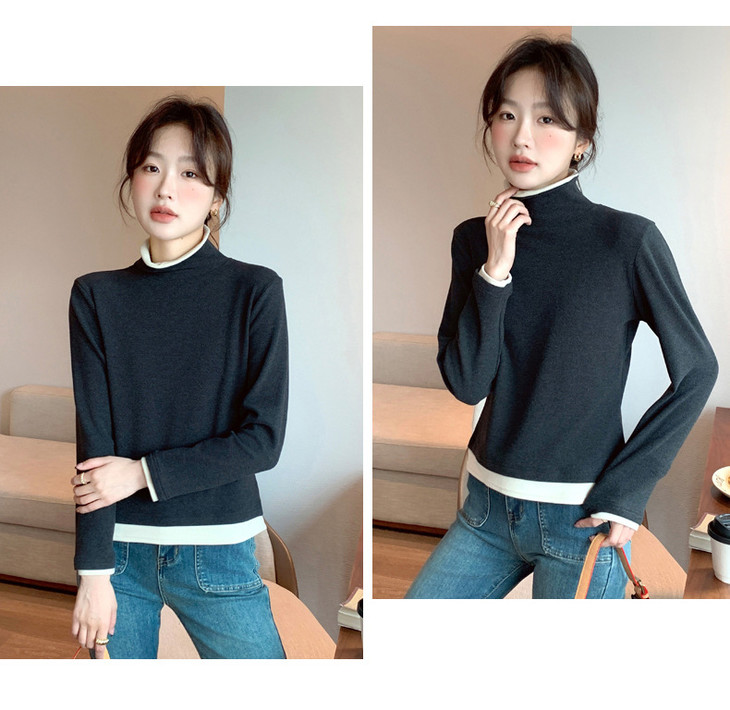 新款装假两件上衣长袖t恤女打底衫叠穿拼接撞色高领内搭