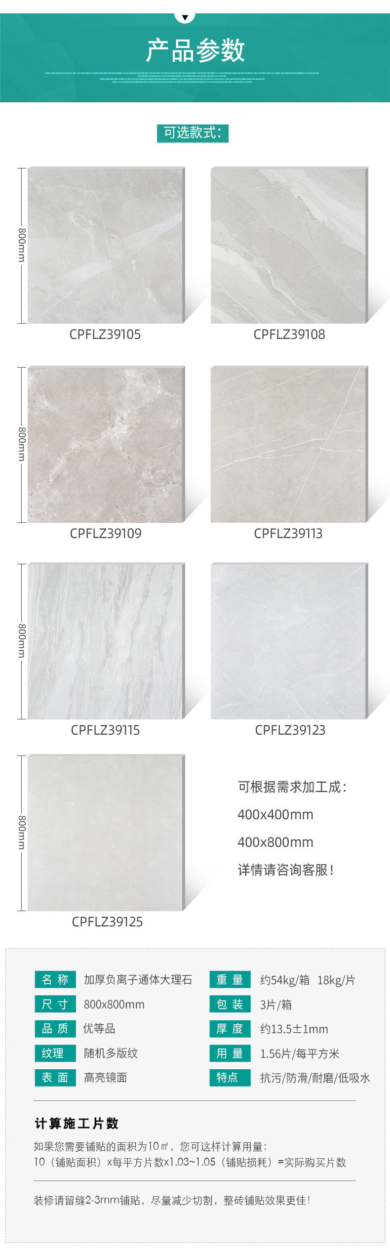 13.5氧吧大理石800瓷砖*加厚生态 佛山mm800地砖负离子地板砖通体 商品图4