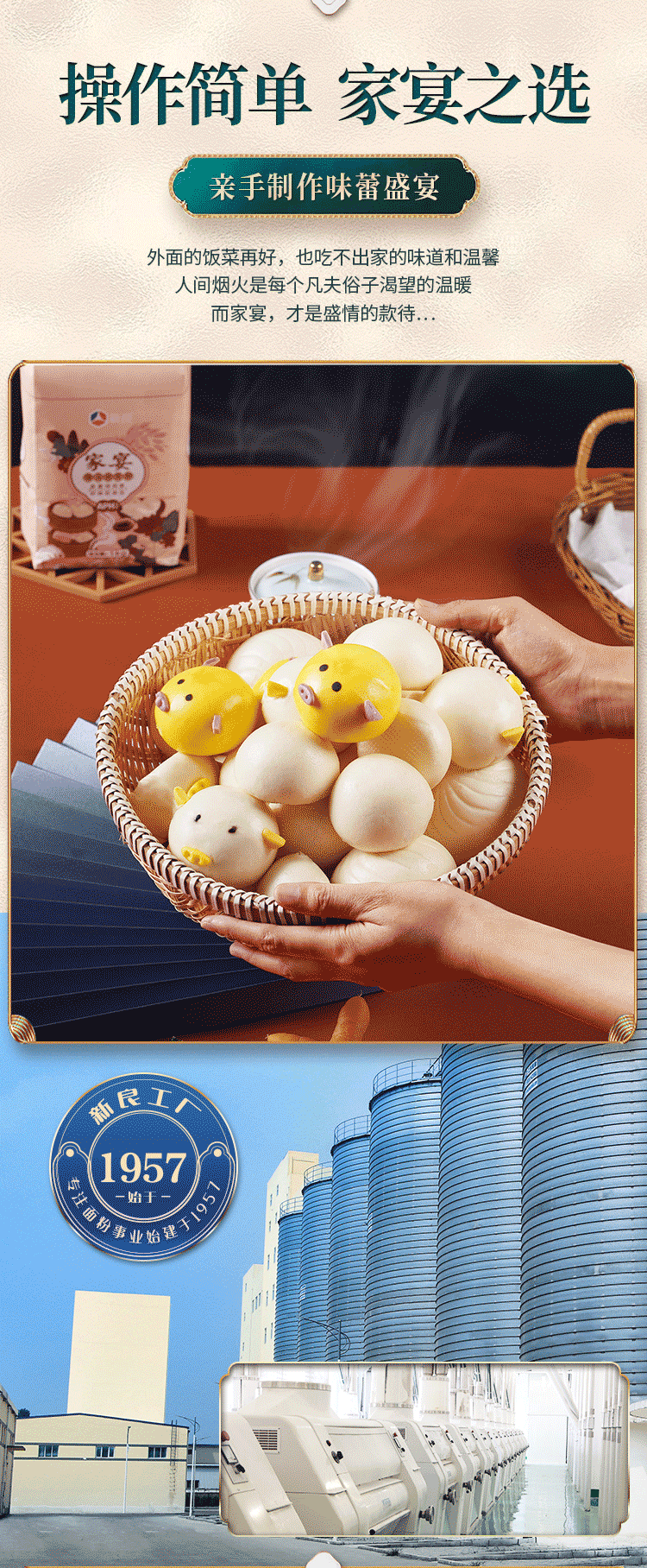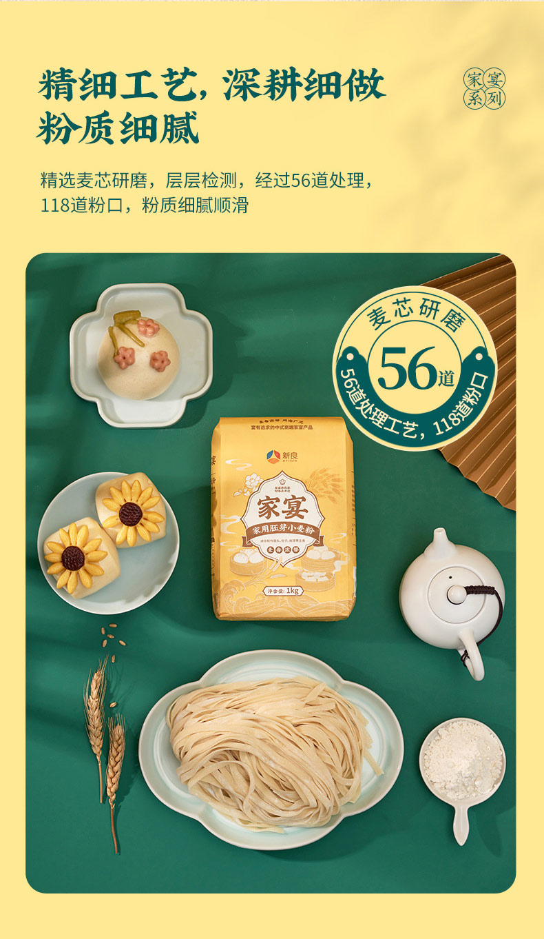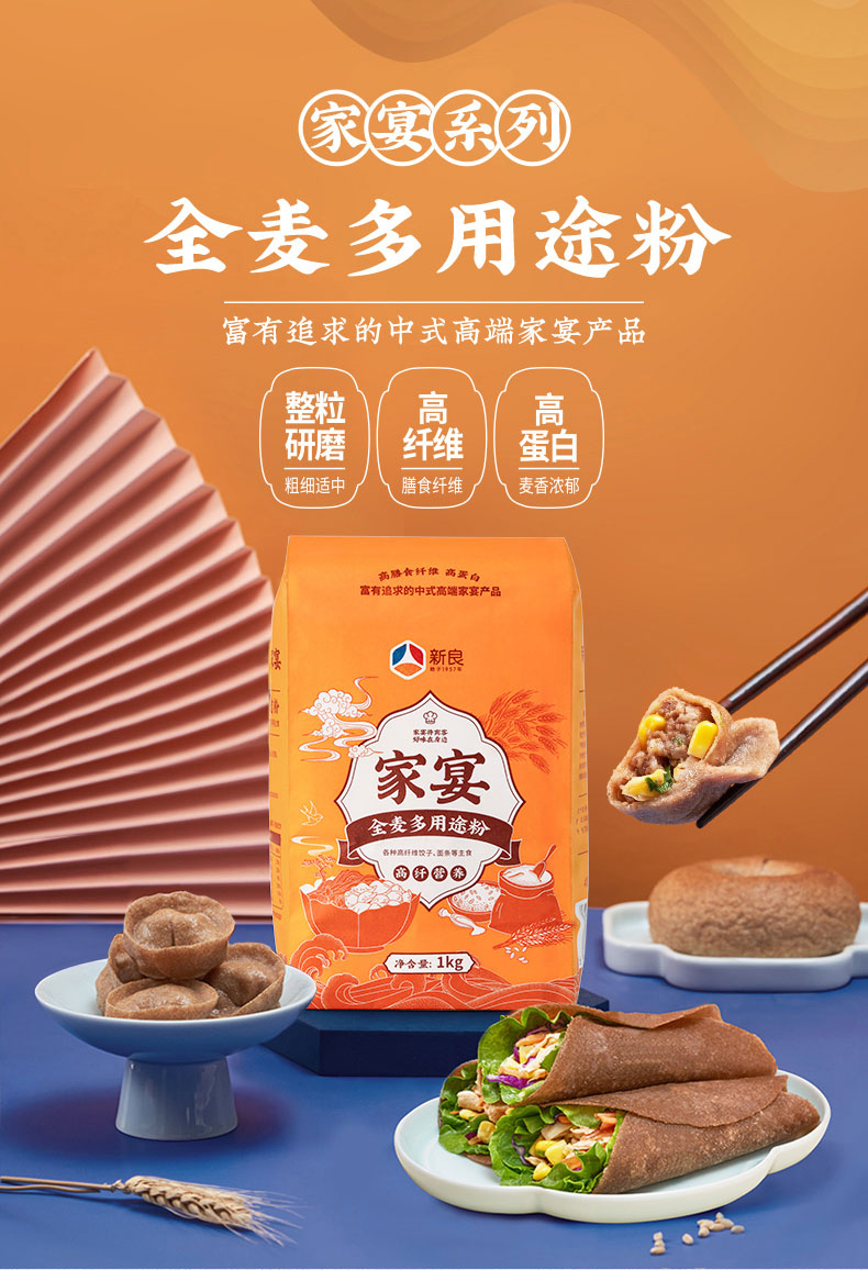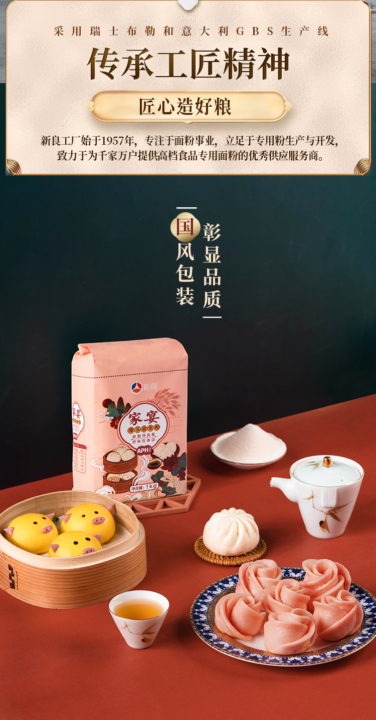 【长帝】新良家宴系列1kg馒头自发粉多用途全麦粉胚芽小麦粉雪花饺子粉老面风味馒头粉