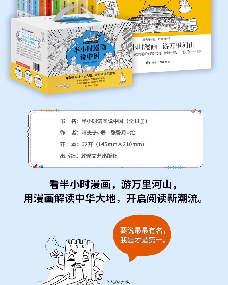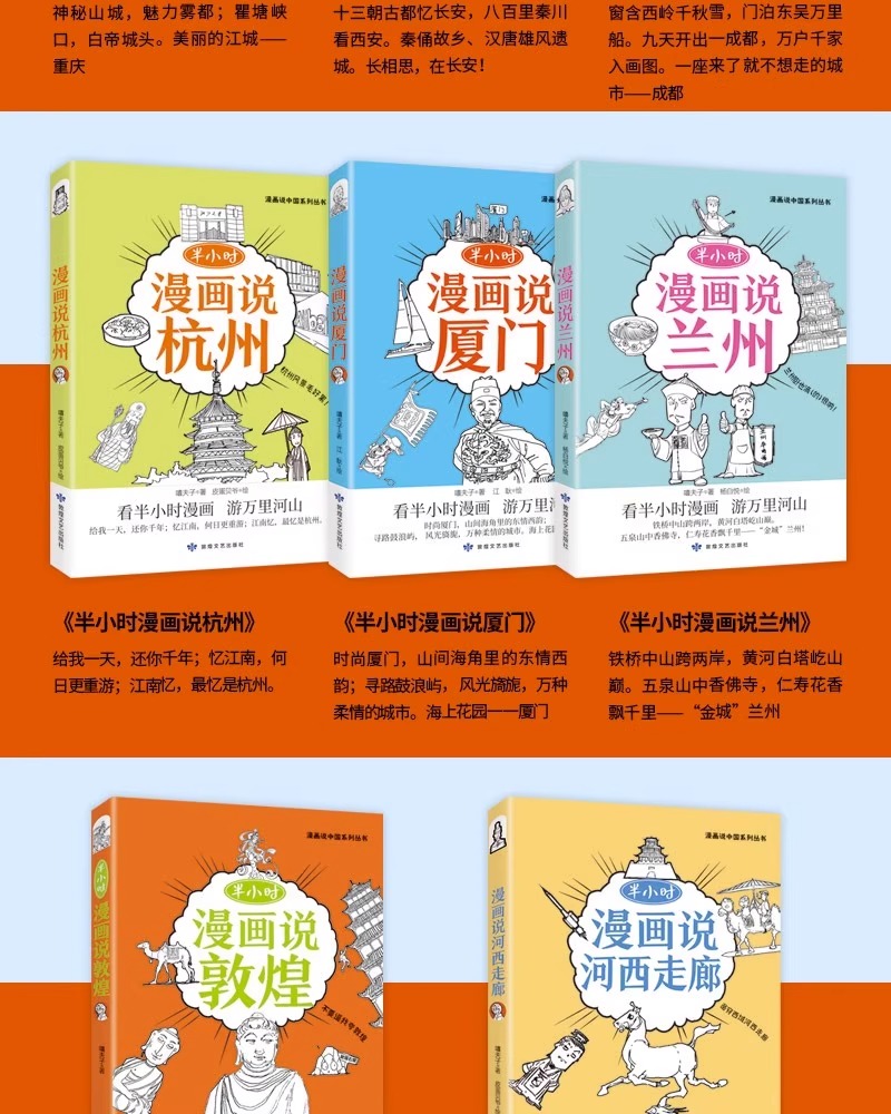 《半小时漫画说中国系列》全11册 看漫画游万里山河,🌈涵盖敦煌、西安、成都、重庆、厦门、北京、上海、杭州、武汉。