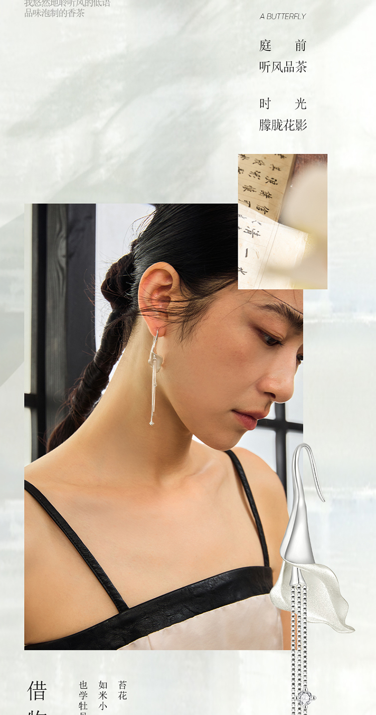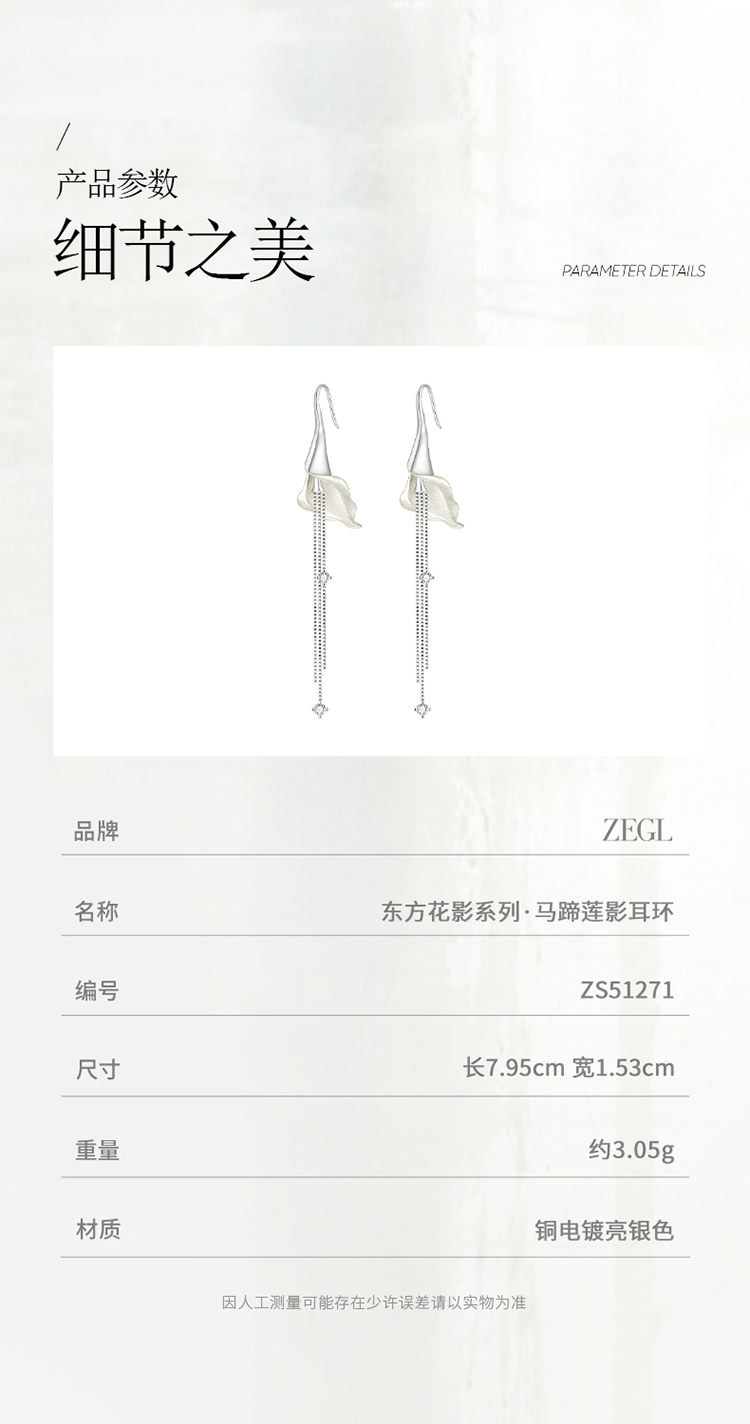 ZEGL设计师东方花影系列马蹄花耳环耳钩女新款爆款耳钉流苏耳饰品