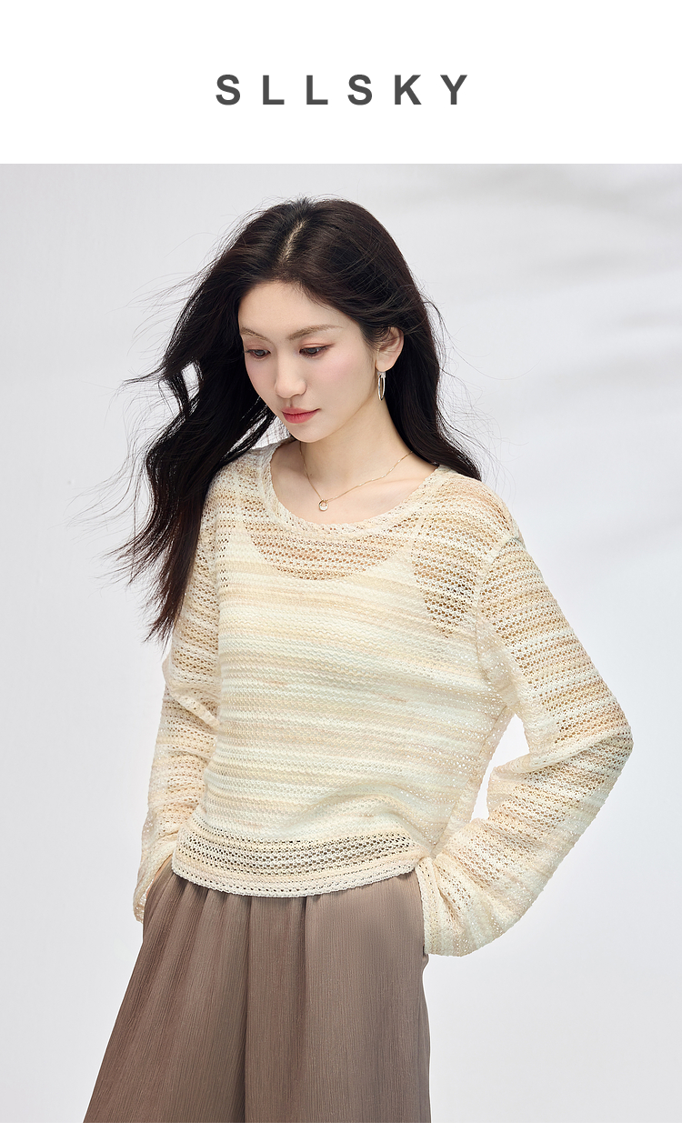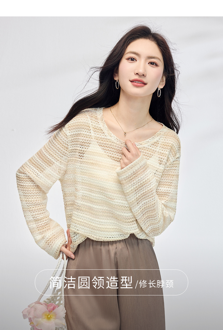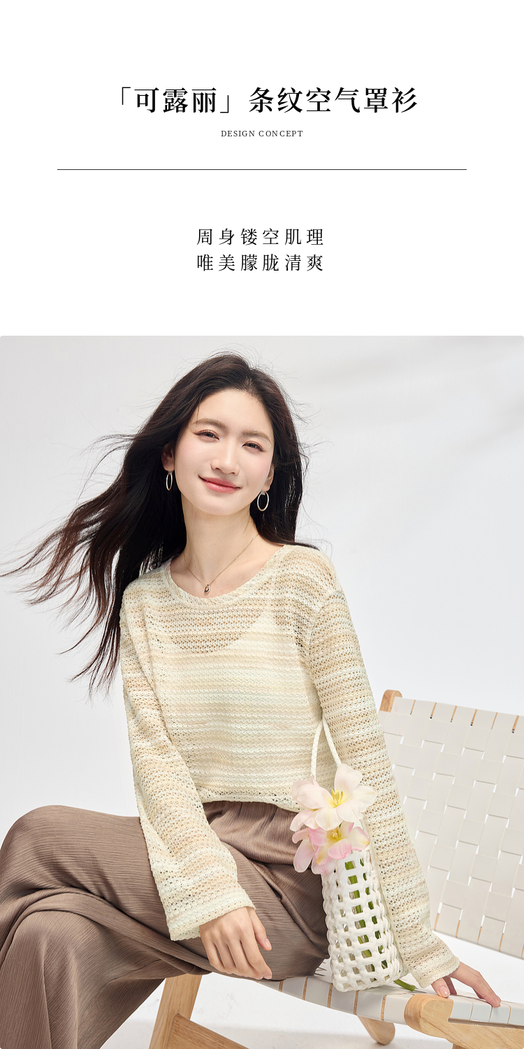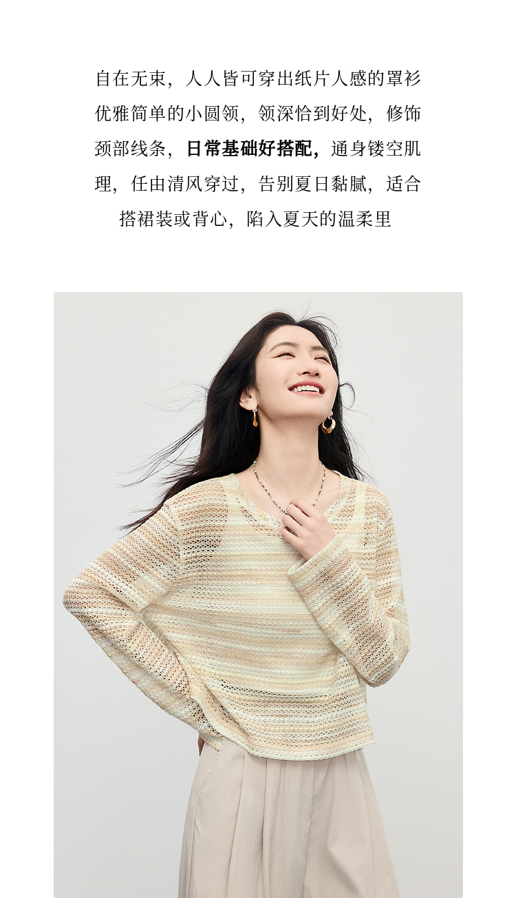 【专属特价】熙世界微透镂空针织罩衫女夏季薄款2025年新款防晒上衣圆领空调衫