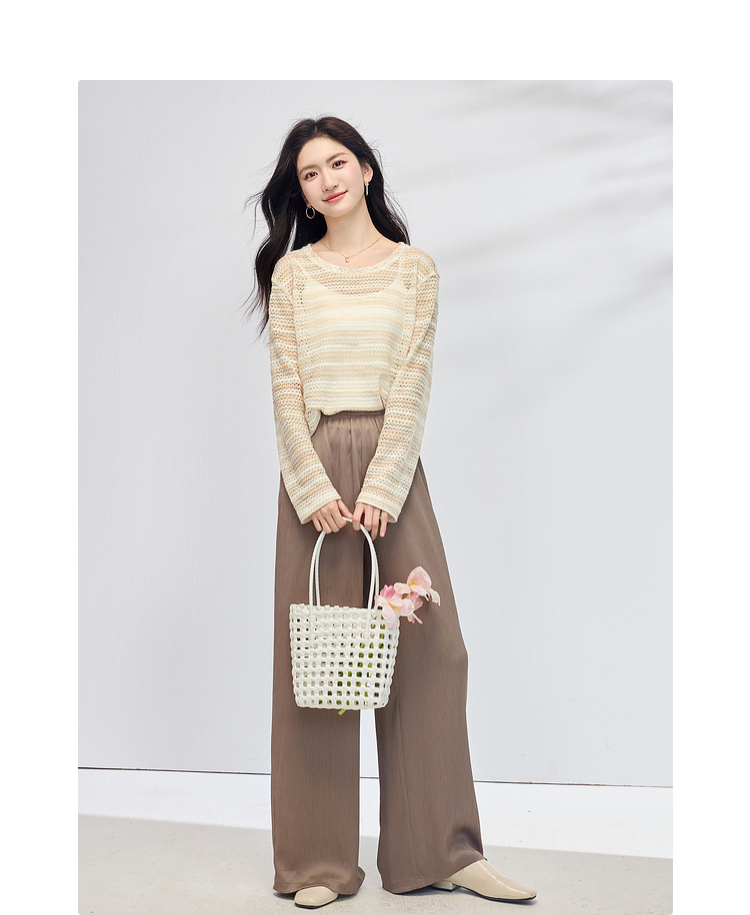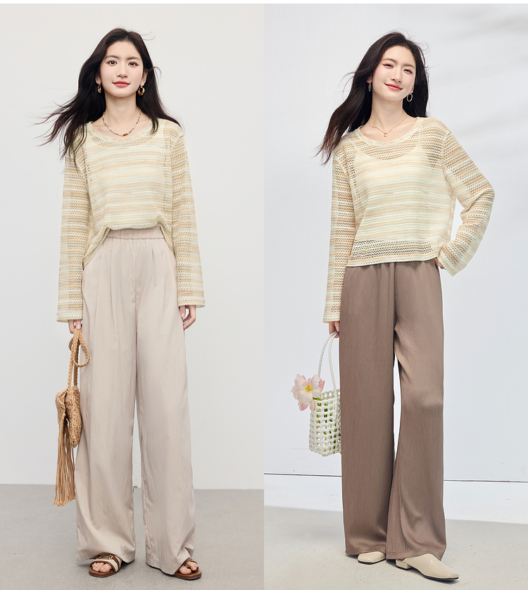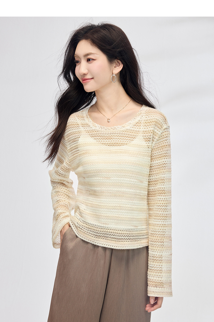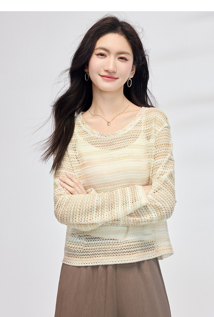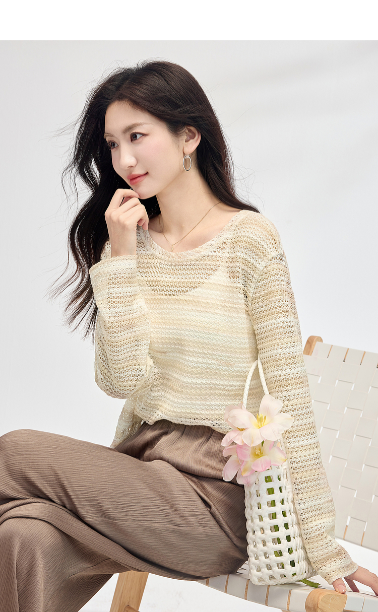 【专属特价】熙世界微透镂空针织罩衫女夏季薄款2025年新款防晒上衣圆领空调衫