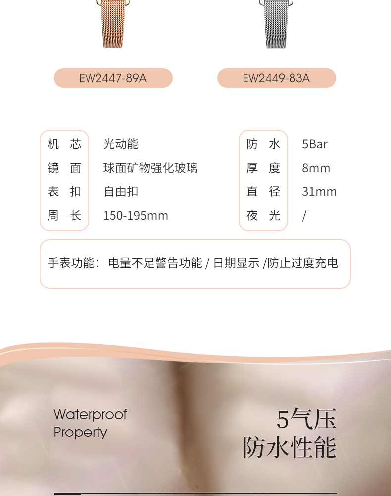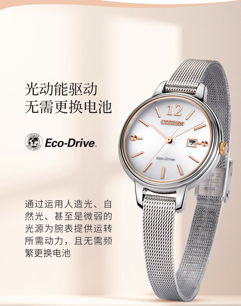 西铁城(CITIZEN)轻便简约温柔光动能手表女EW2449-83A