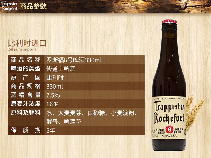罗斯福6号修道士啤酒330ml *1瓶/6瓶/12瓶//24瓶整箱
