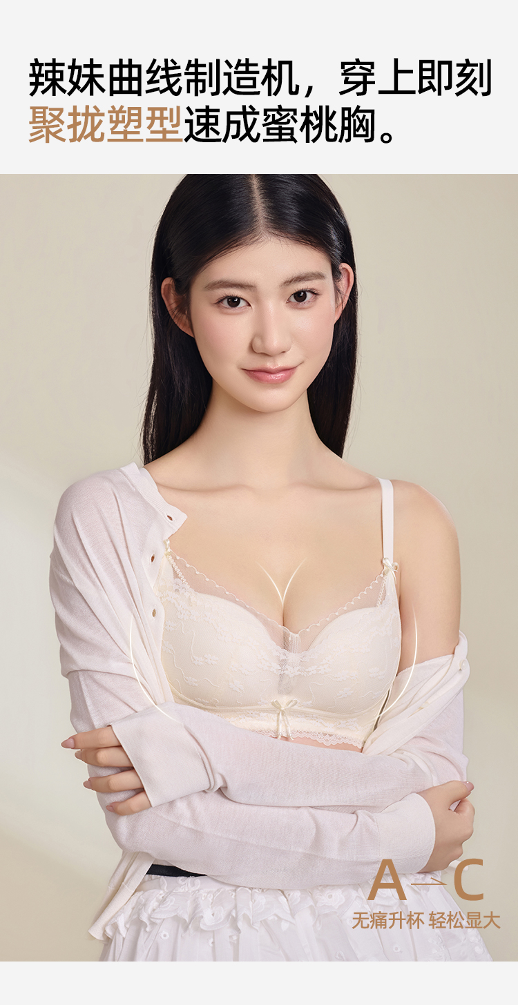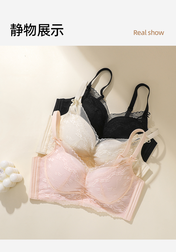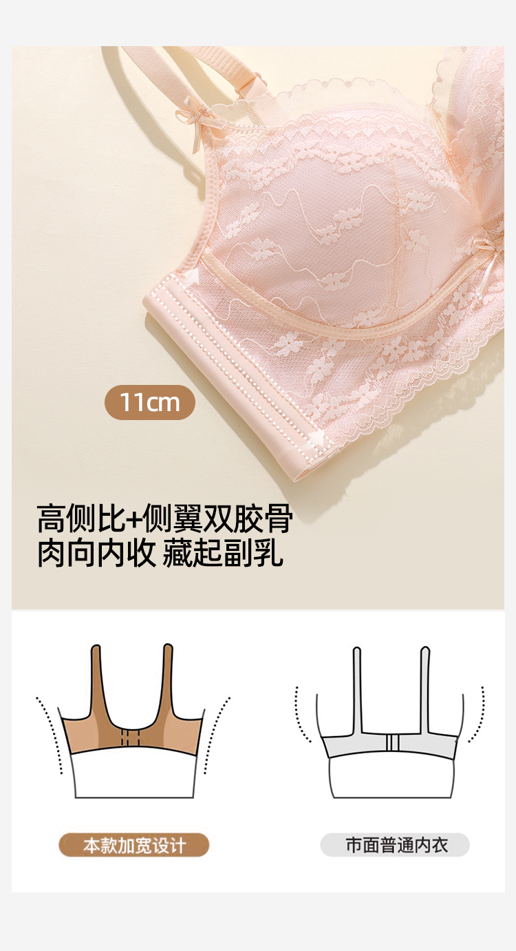 【强聚拢】熳洁儿 莫代尔杯甜美系小胸聚拢文胸法式浪漫蕾丝上托显大25261517