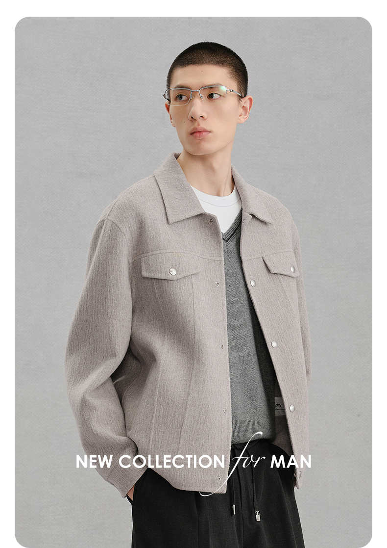 GXG男装 米色肌理感通勤短大衣外套24冬热卖G24X064025