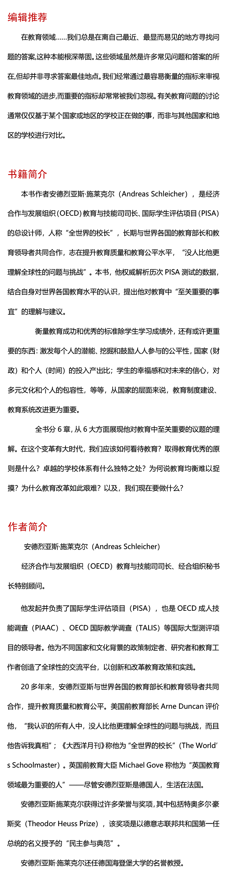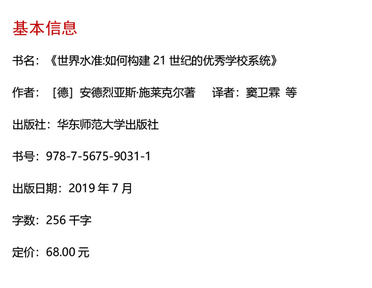 世界水准 如何构建21世纪的youxiu学校系统 全球性教育问题 解析历次PISA测试数据 正版 华东师范大学出版社
