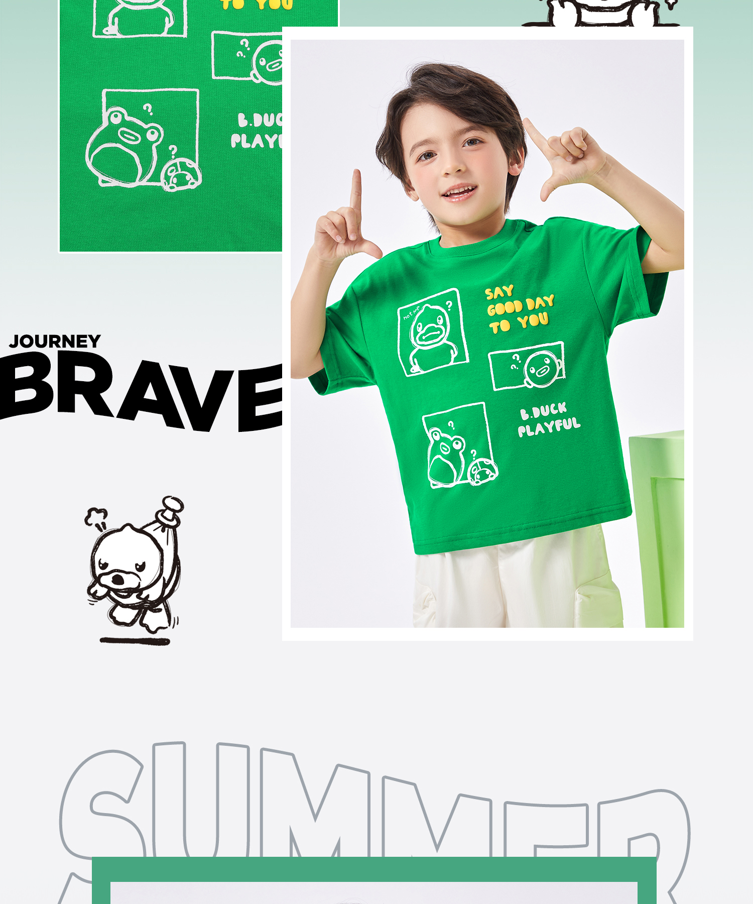 【冰感】B.Duck小黄鸭童装夏季短袖T恤105-150 BF2501028