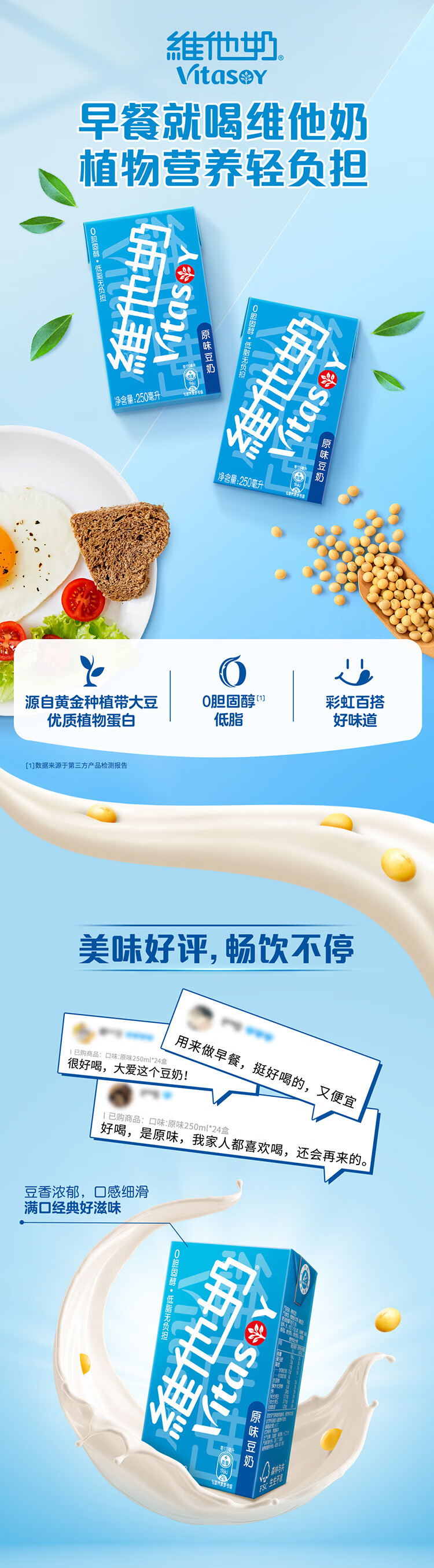 维他奶 原味豆奶植物奶蛋白饮料250ml*24盒 低脂零胆固醇 家庭营养早餐奶 饮料整箱装