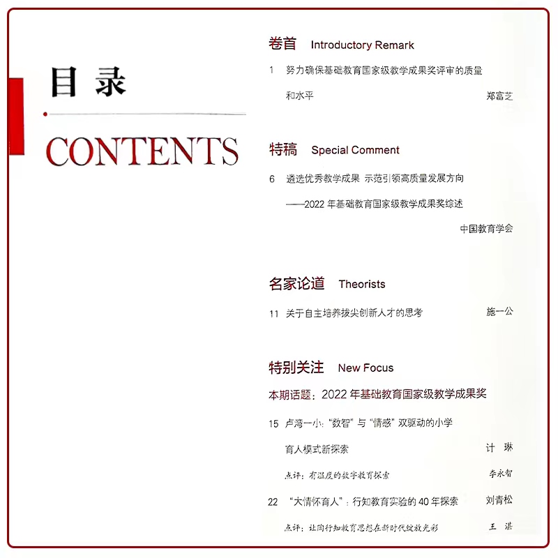 遴选优秀教学成果 示范引领高质量发展方向——2022年基础教育国家级教学成果奖综述 / 中国教育学会