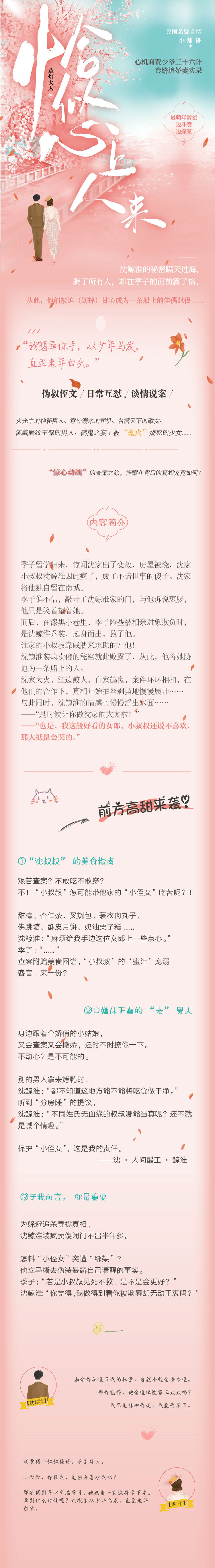 这本书是——真·小甜饼!喜欢季子勇敢而坚定的选择,喜欢沈鲸怀口嫌体正直的傲娇属性,他们于千万人中再次重逢并义无反顾地走进对方的世界,满满都是命中注定的爱。——季眠