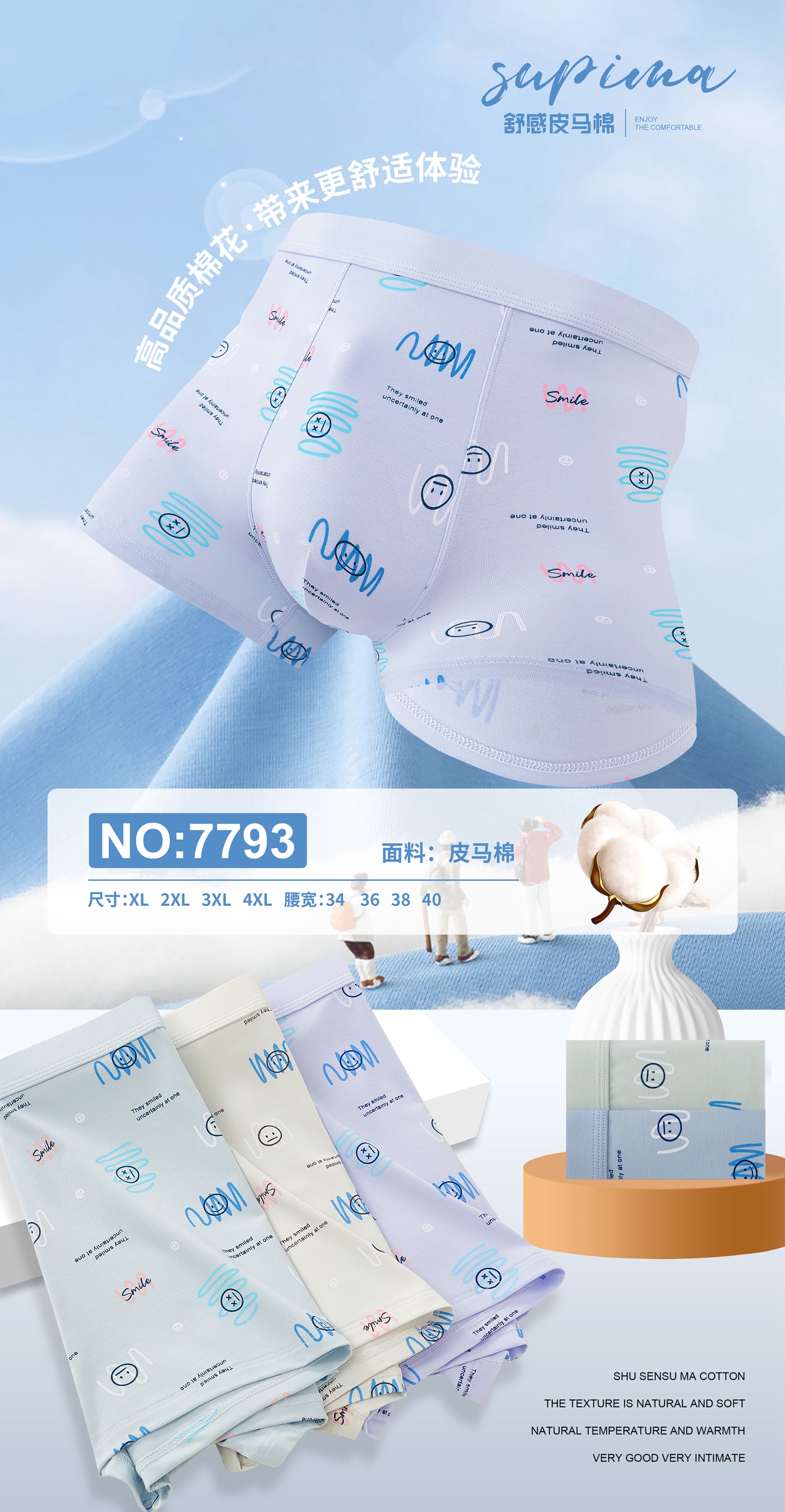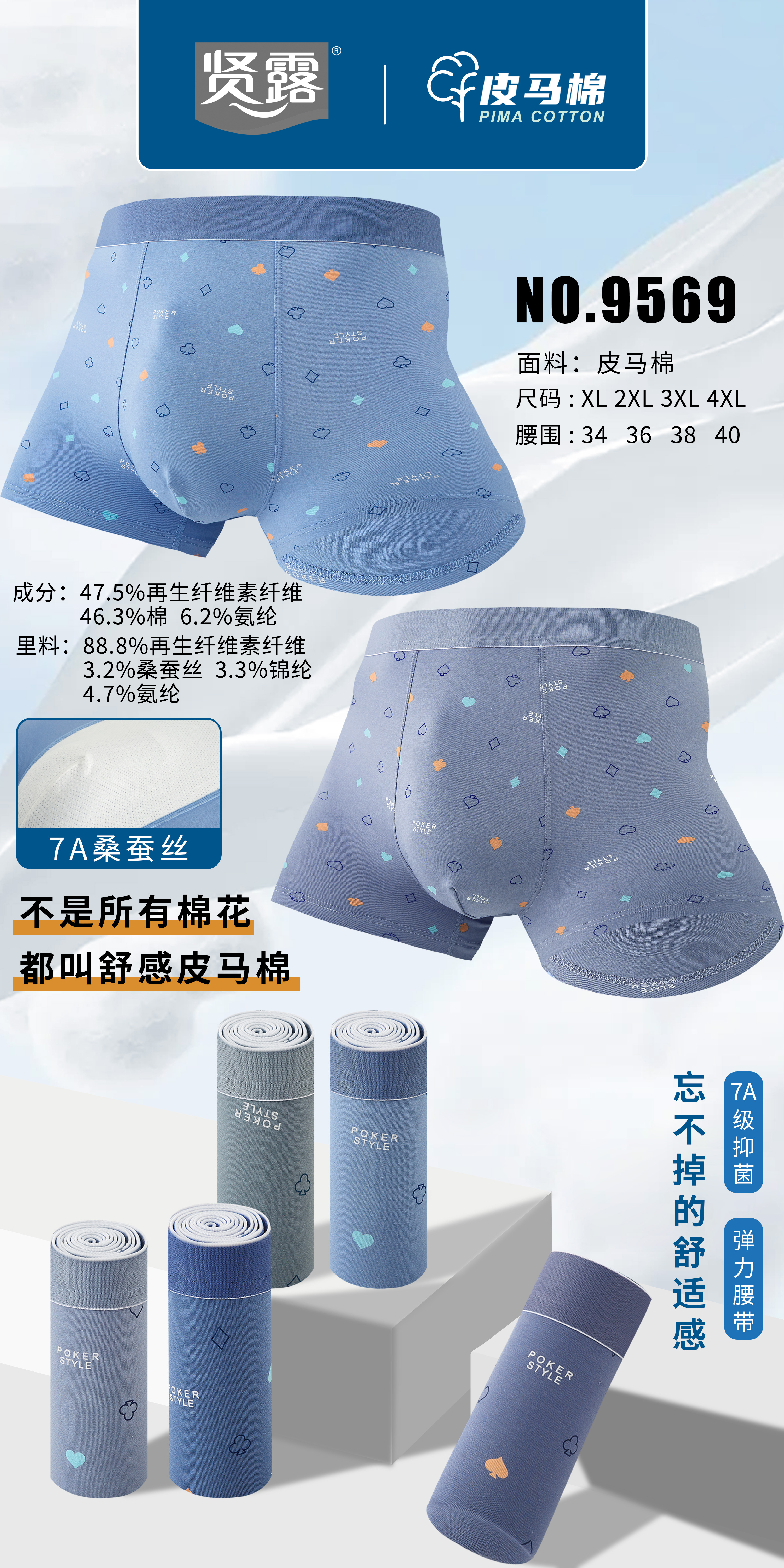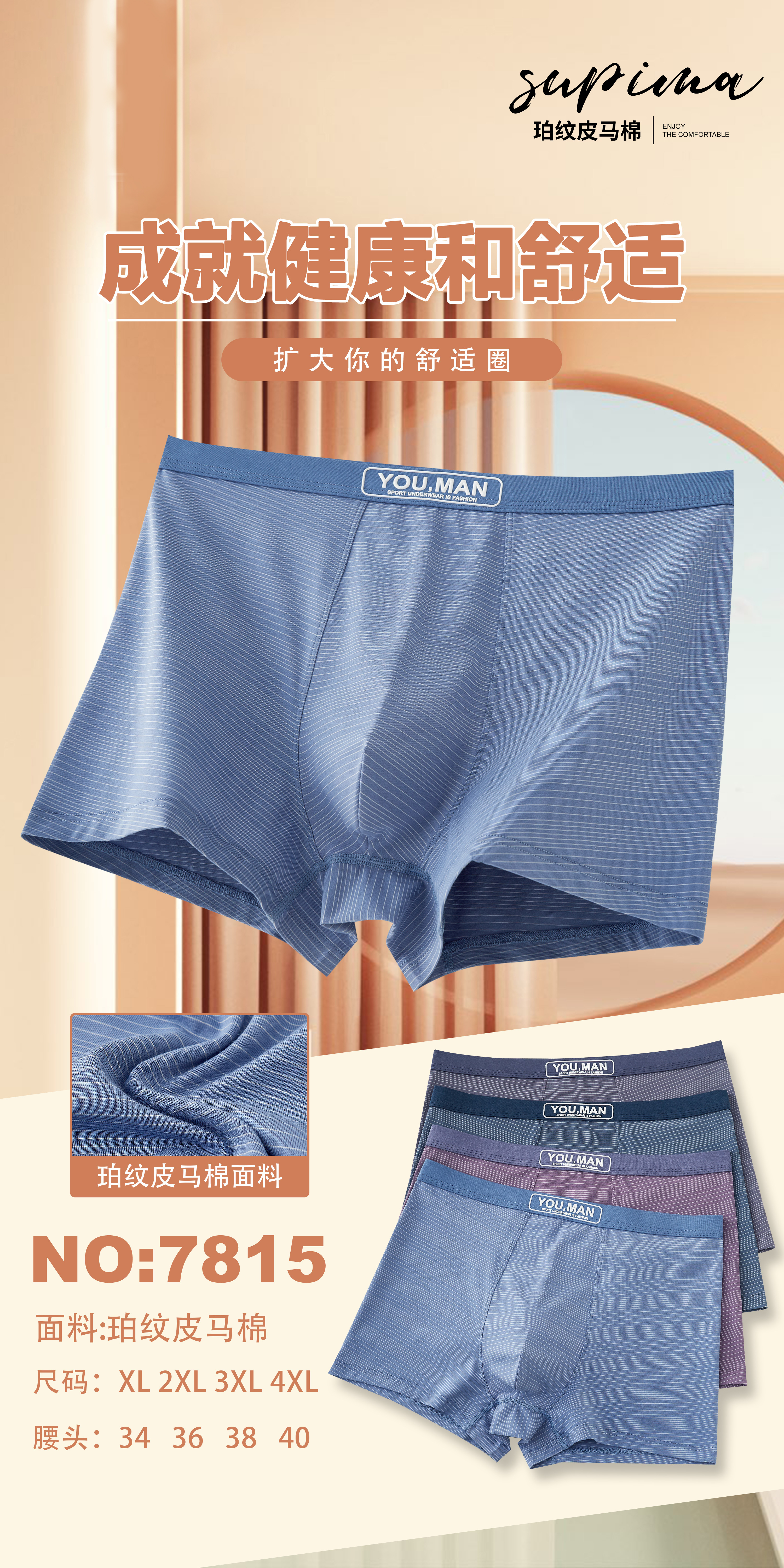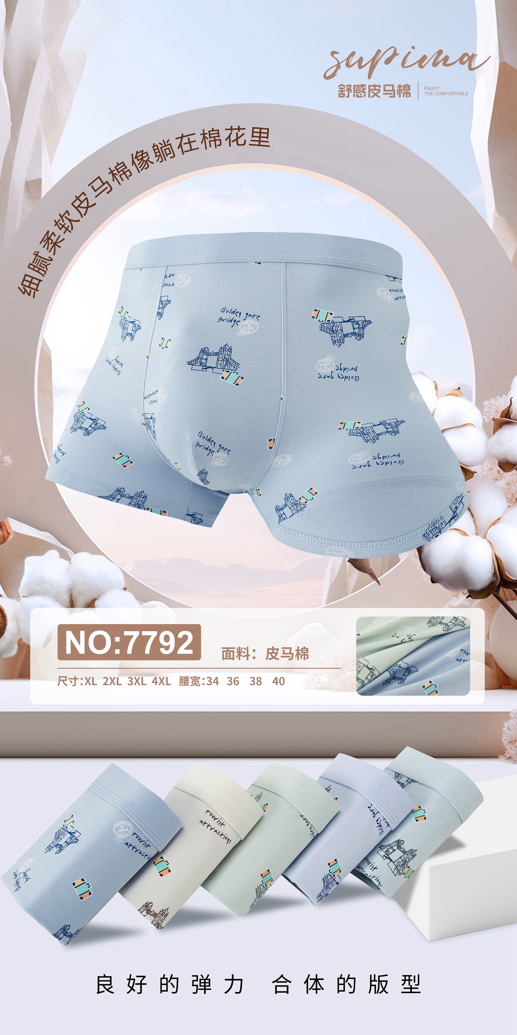 男士皮马棉净色印花包头明筋内裤7792/7793/7795/6647/8750/6656/9569/7815
