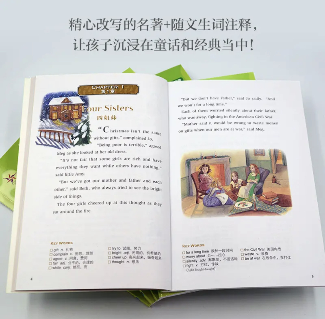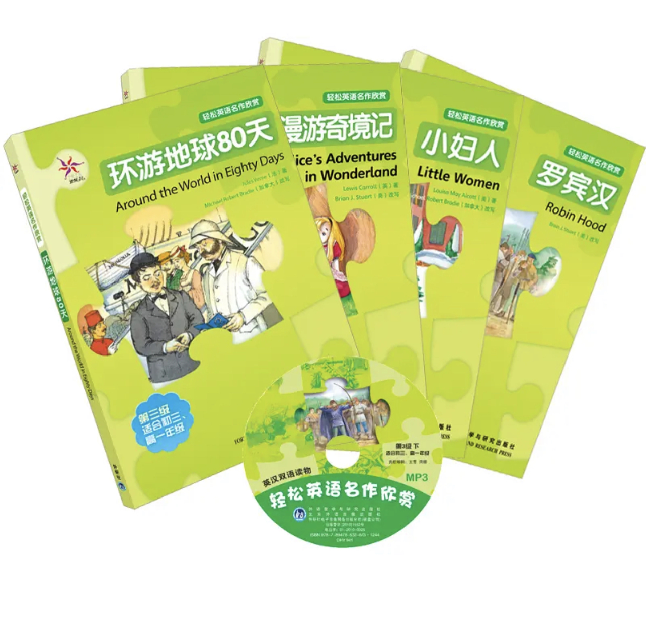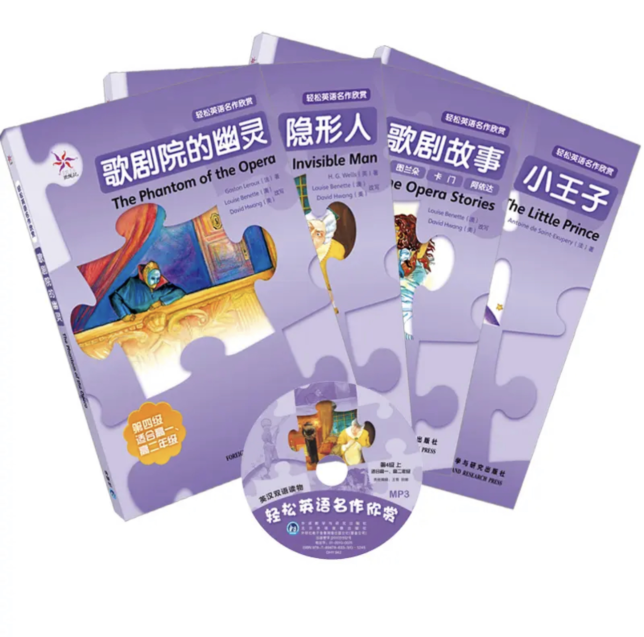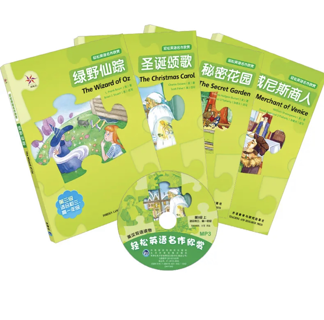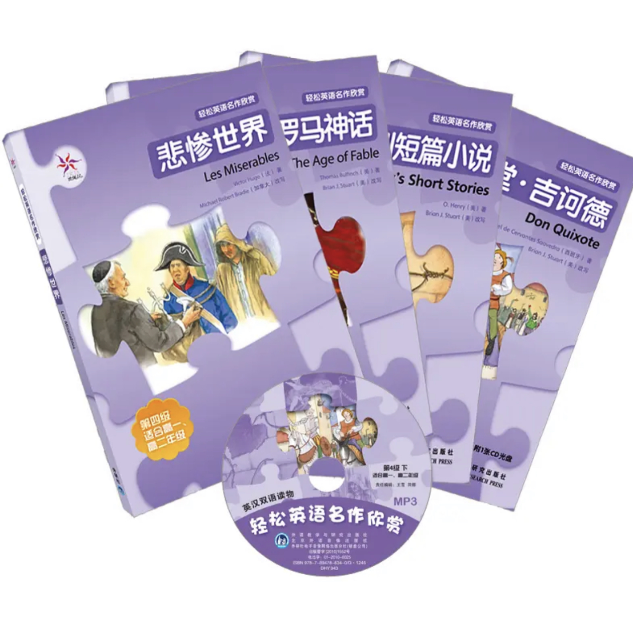 轻松英语名作欣赏高中版 四盒16册三级+四级上下英汉对照分级读物