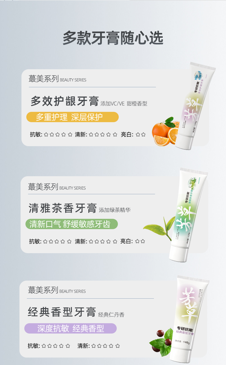 【星星商城】芳草 超划算牙膏套餐(经典仁丹140g*2+多效护龈120g*2+清雅茶香120g*2+盐白劲爽120g*2) 多款牙膏多重护理 48小时发货