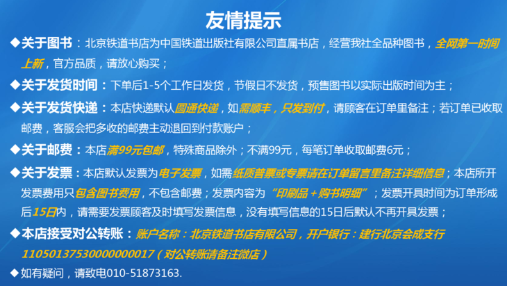 - 北京铁道书店成立于2001年,为中国铁道出版社有限公司全资企业。书店致力于服务中国铁路科技发展和轨道交通事业进步,专注于传播铁路科技文化,是铁路专业读者和铁道爱好者的首选购书地点。