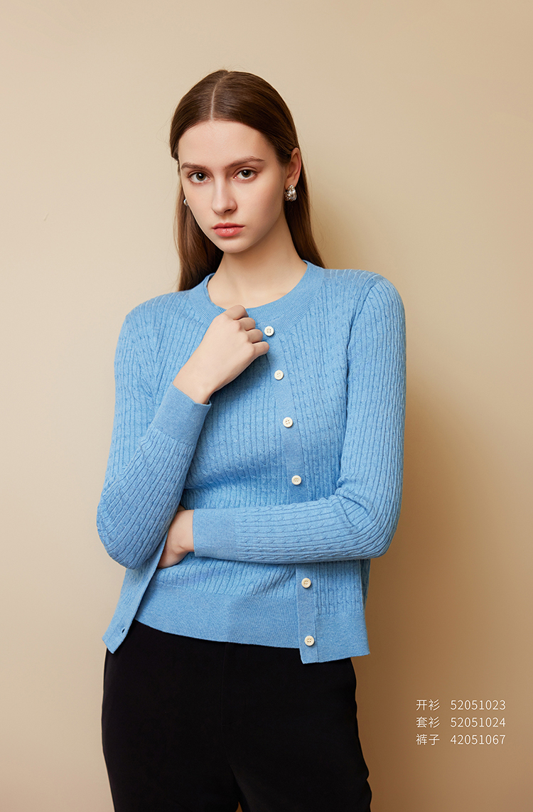 【棉质抽条开衫】25年春夏新款女士薄款圆领针织开始修身显瘦小外套