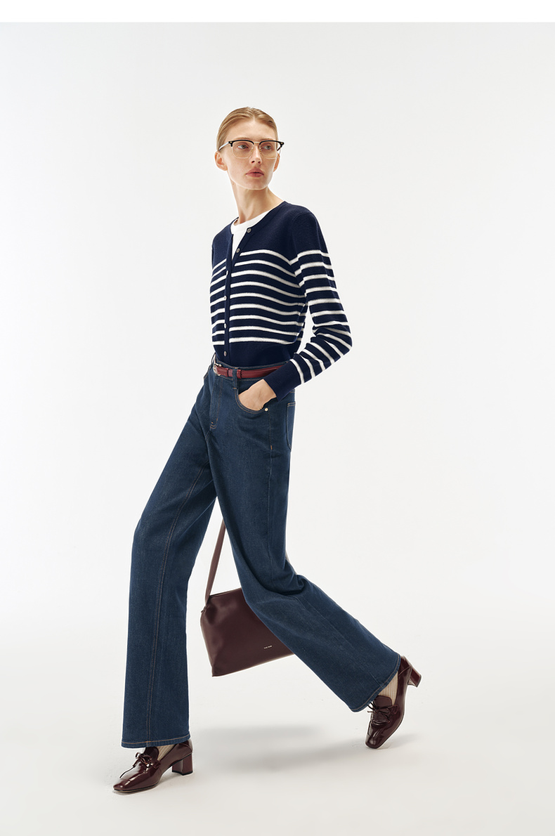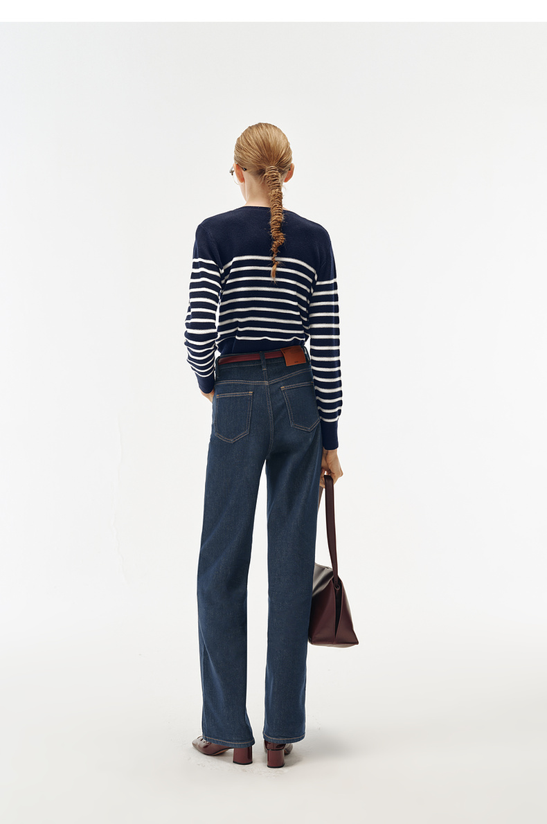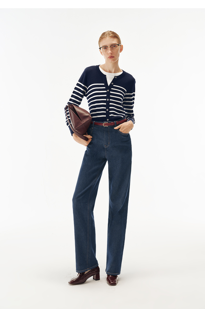 【严选】诗凡黎经典水洗直筒牛仔裤2025秋新款丹宁风高腰显瘦通勤休闲长裤7G7150981