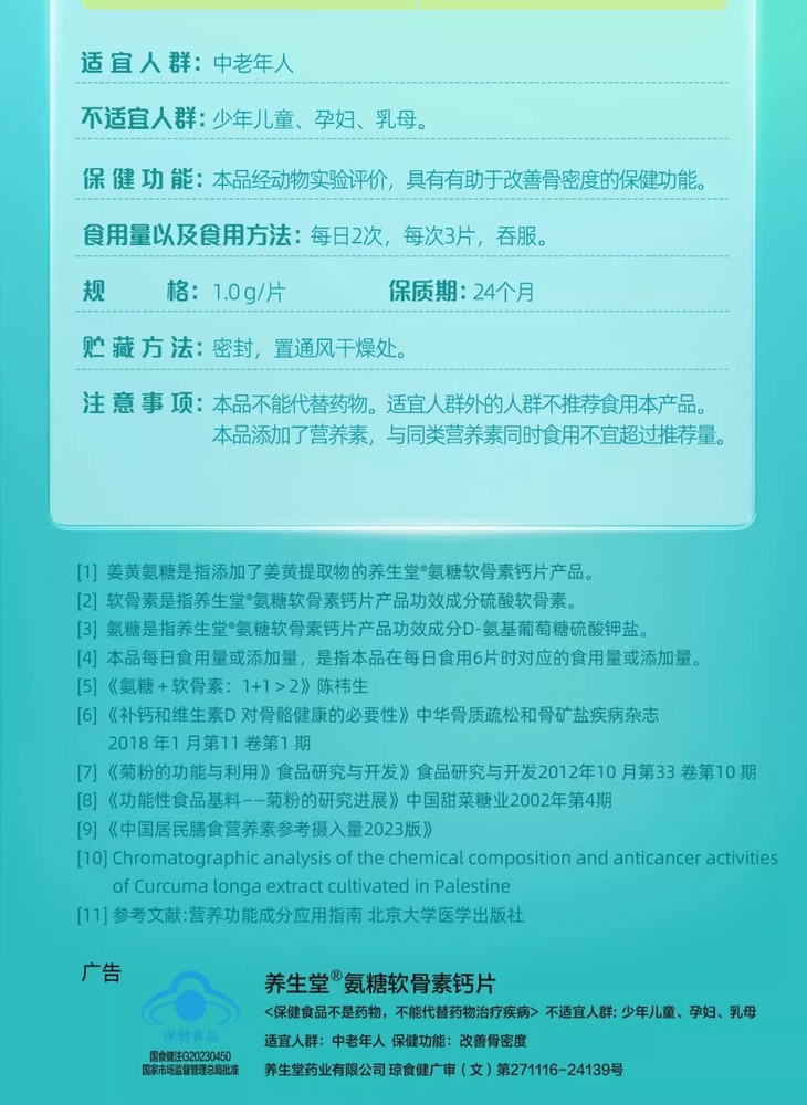 精准搭配氨糖、软骨素、姜黄、碳酸钙、维生素D3;