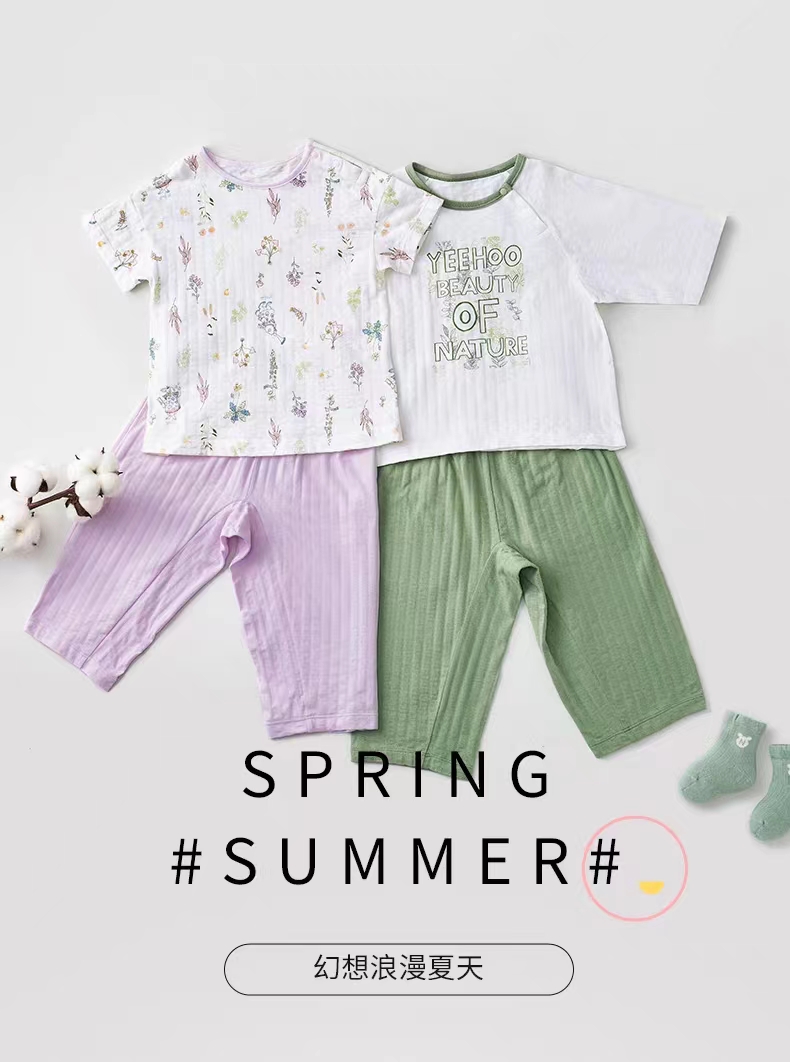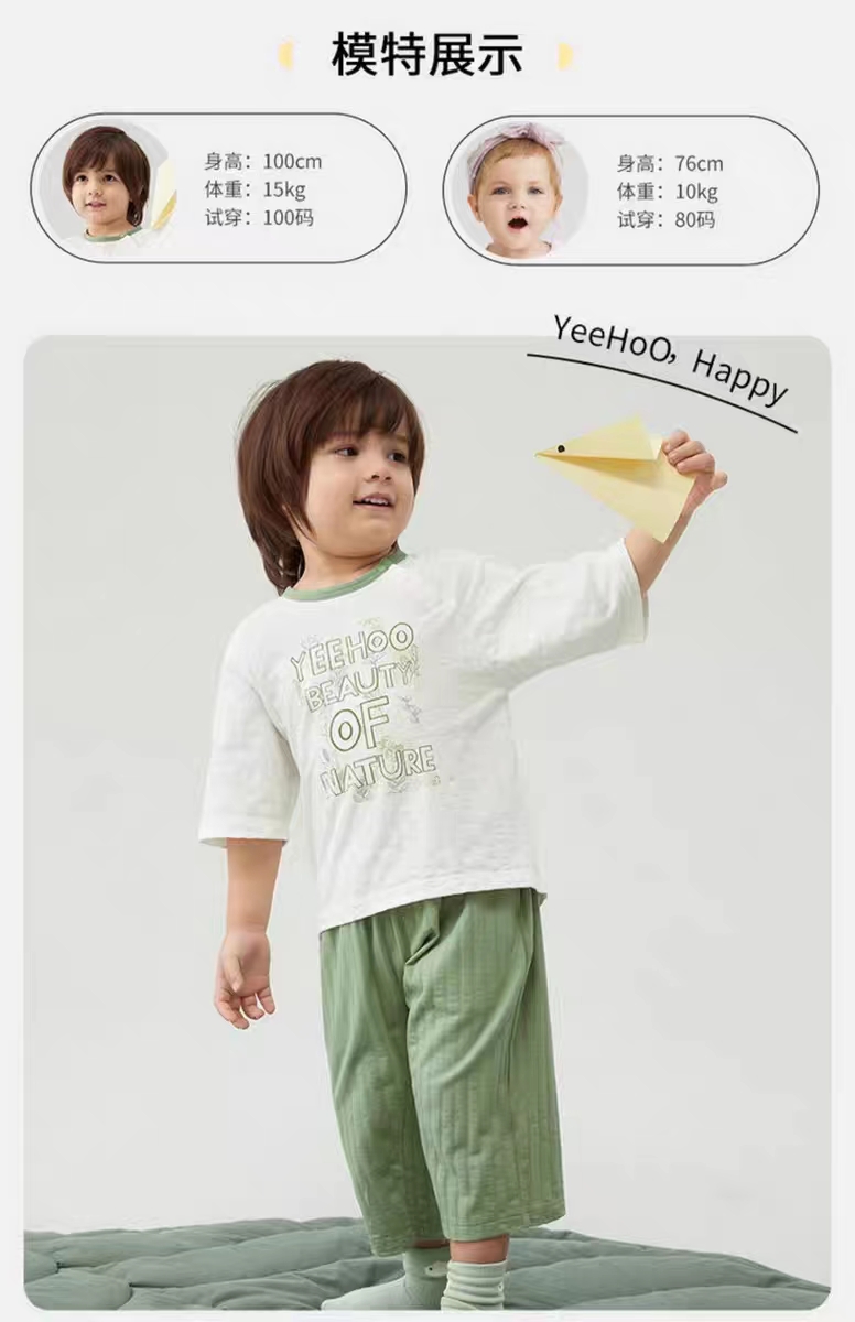 英氏童装儿童家居服男童女童套装薄款夏季宝宝婴儿空调睡衣两件套YLNCJ22008A