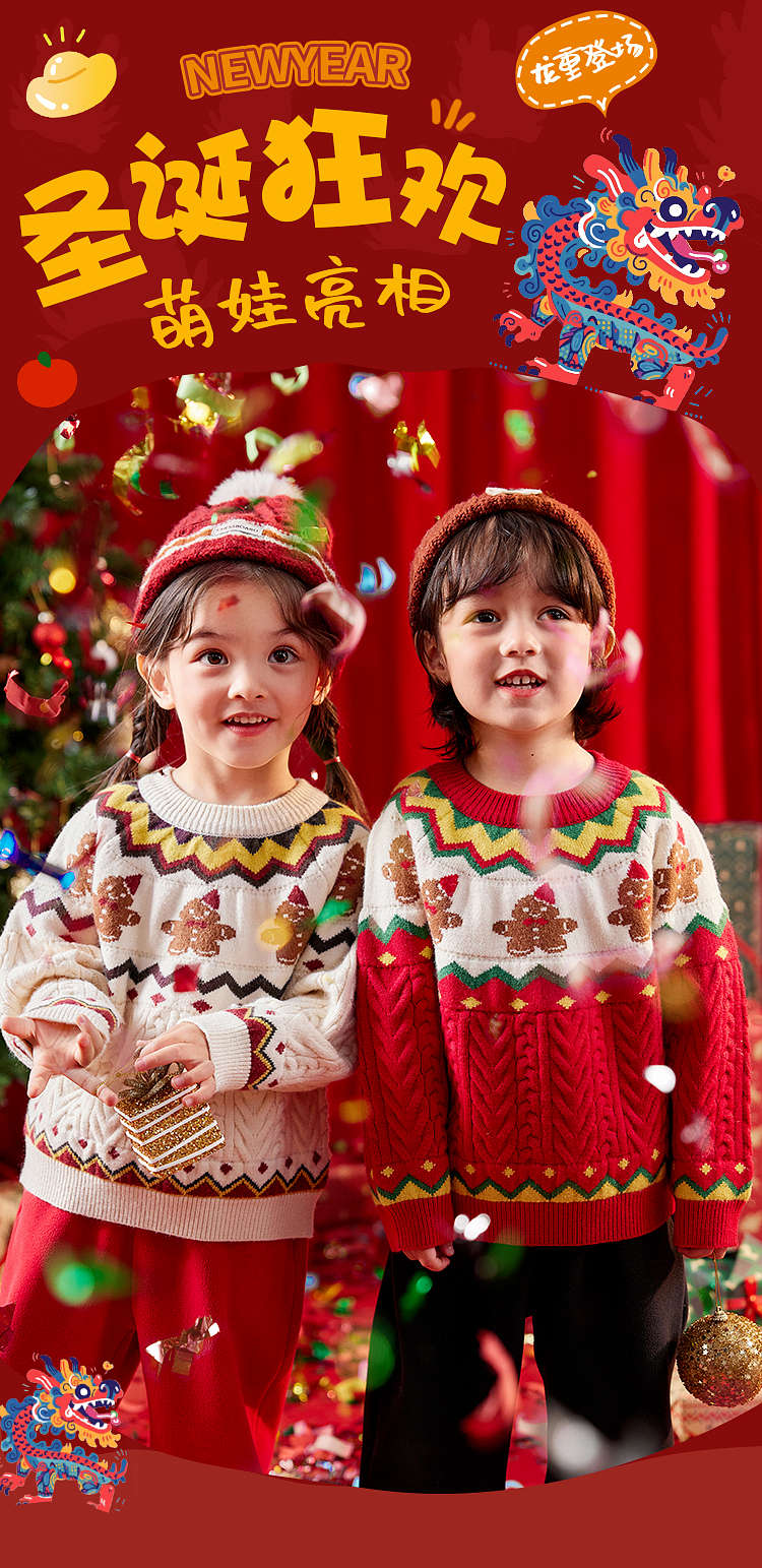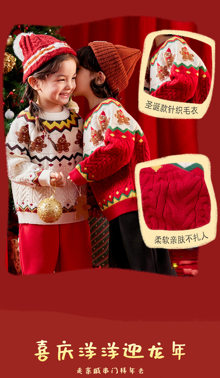 嘟嘟家宝宝毛衣儿童红色喜庆衣服女童秋冬针织衫男童冬季保暖童装⭐️