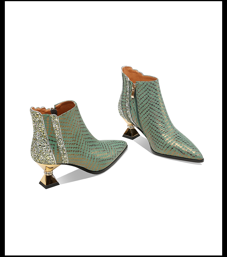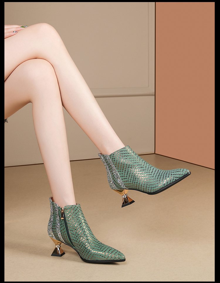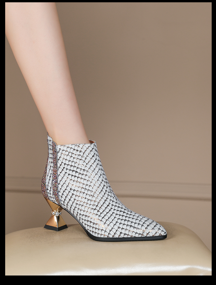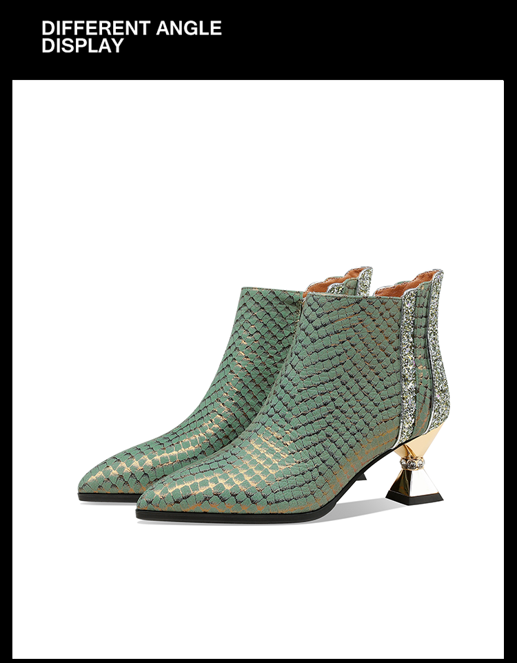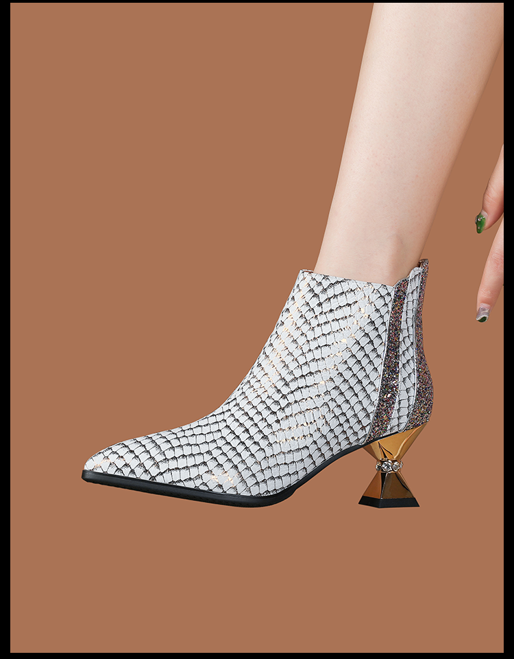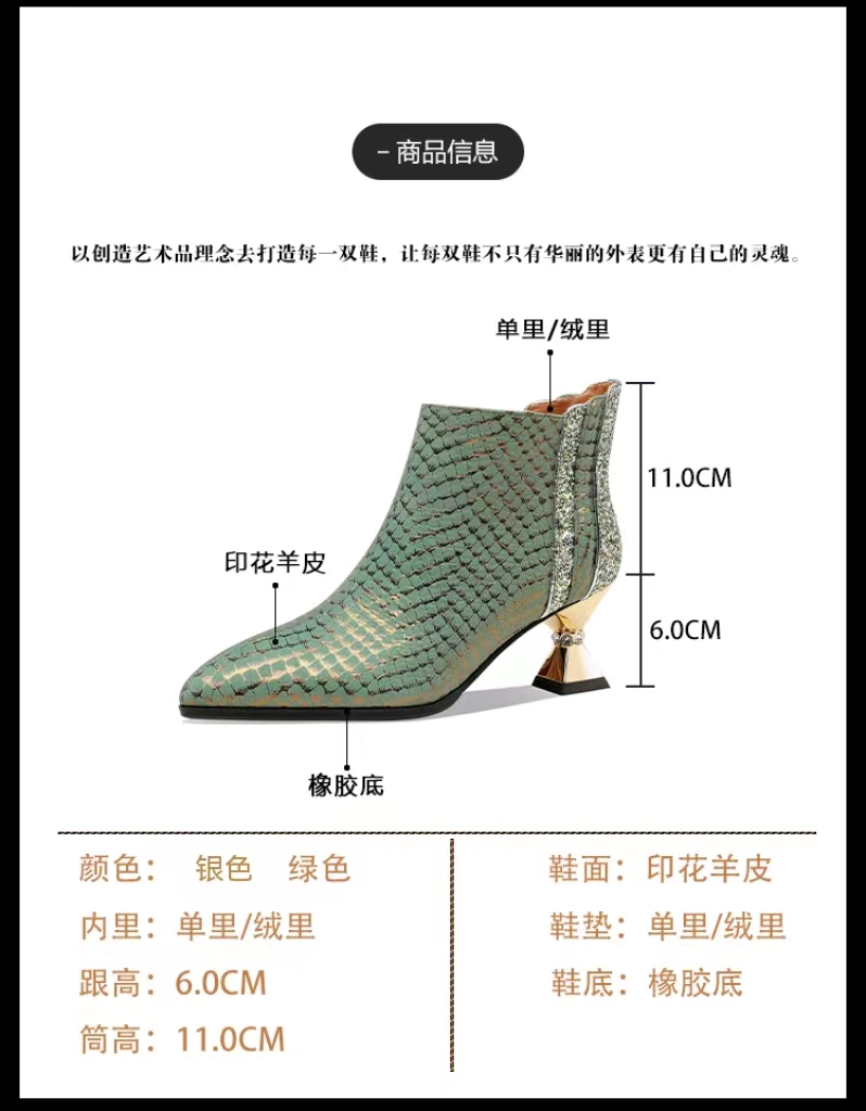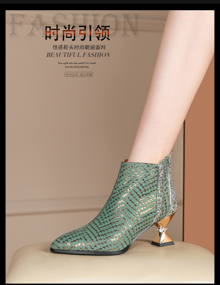 【预售5天】新款法式小短靴,女羊皮及踝靴水钻高跟皮靴尖头粗跟春秋单靴子PLGZ-D86-10