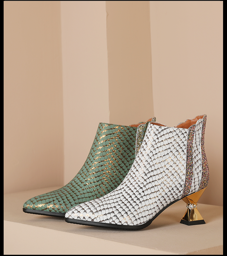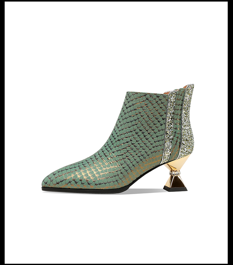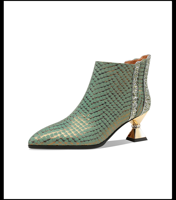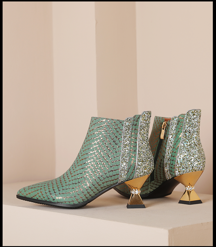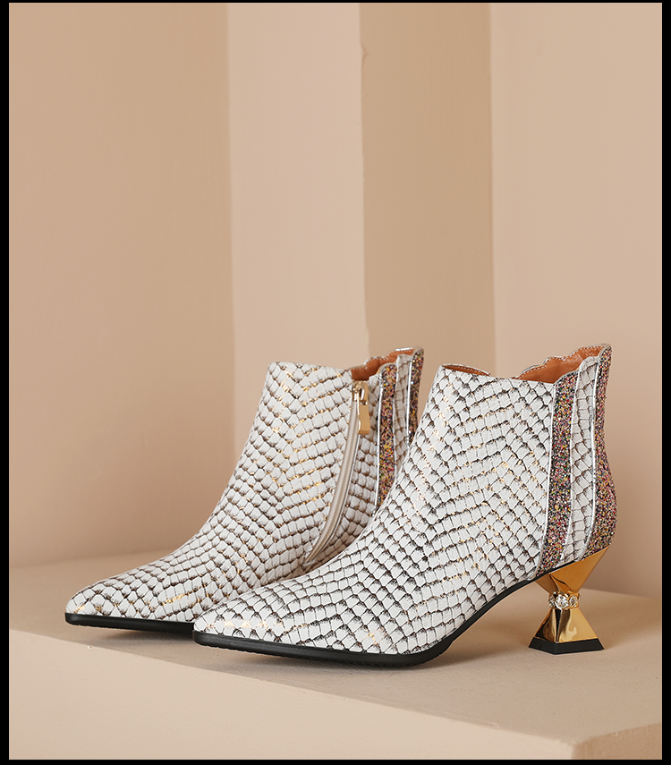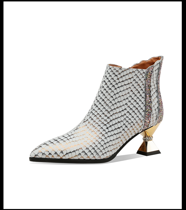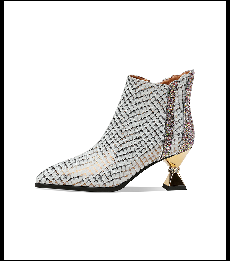 【预售5天】新款法式小短靴,女羊皮及踝靴水钻高跟皮靴尖头粗跟春秋单靴子PLGZ-D86-10