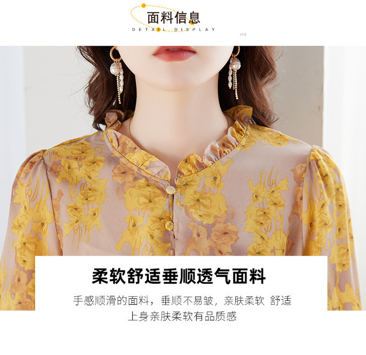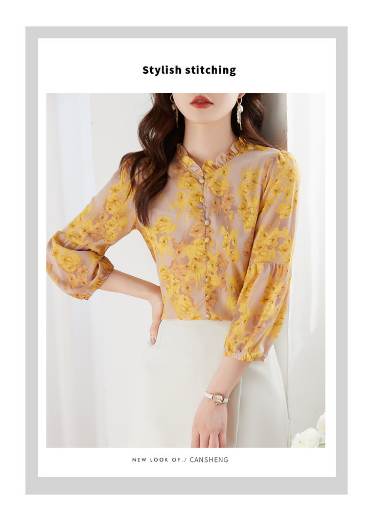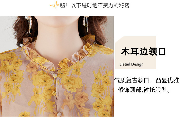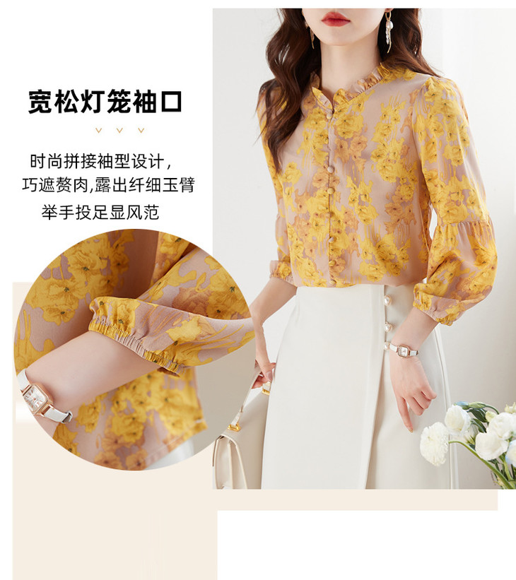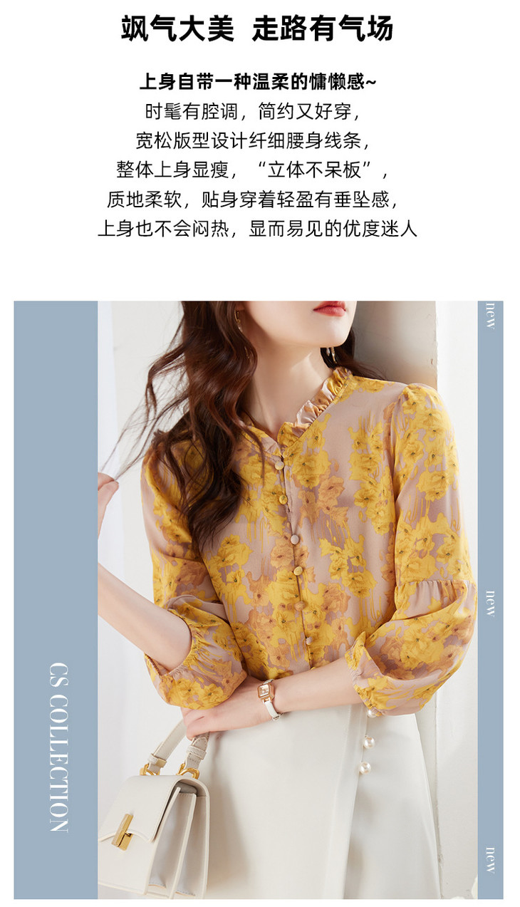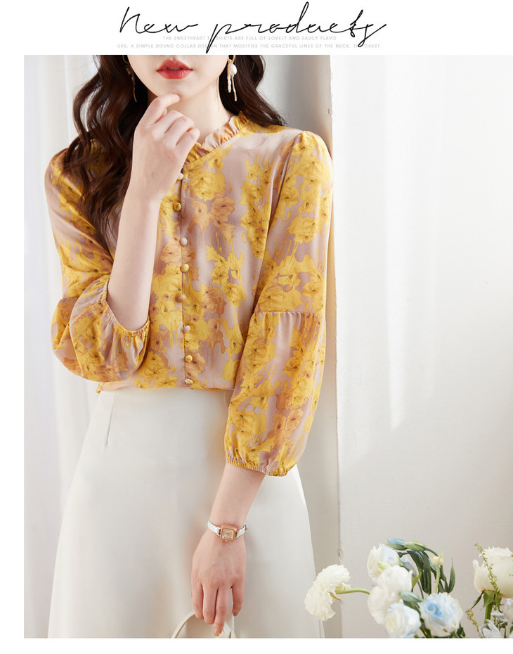 印花七分袖衬衫新款时髦洋气小衫气质宽松上衣雪纺AHM-dtyx2163