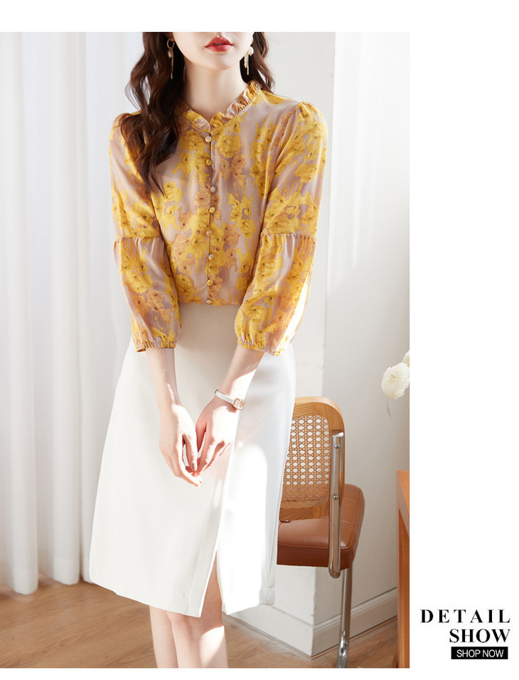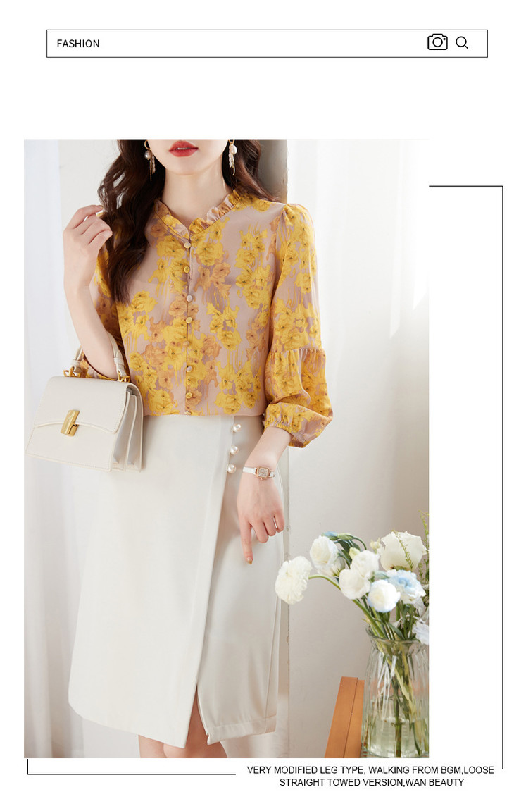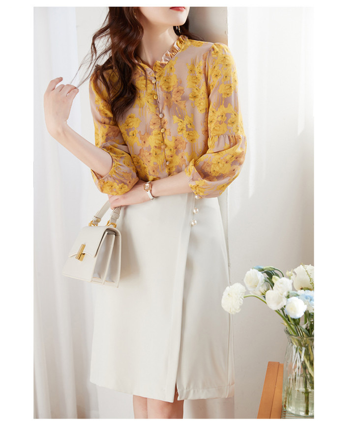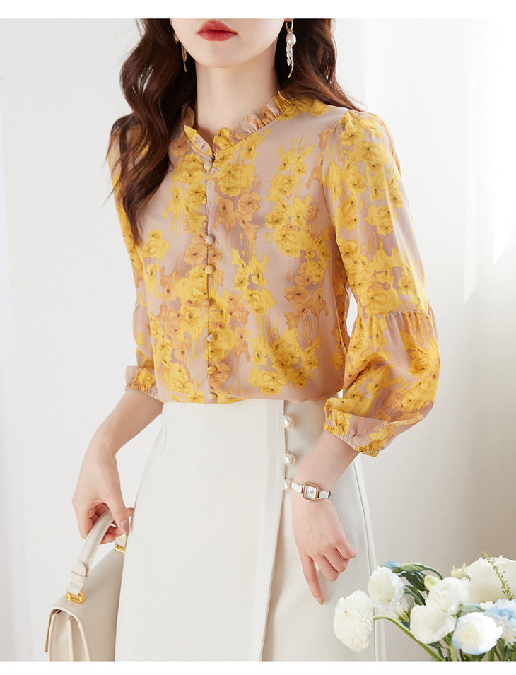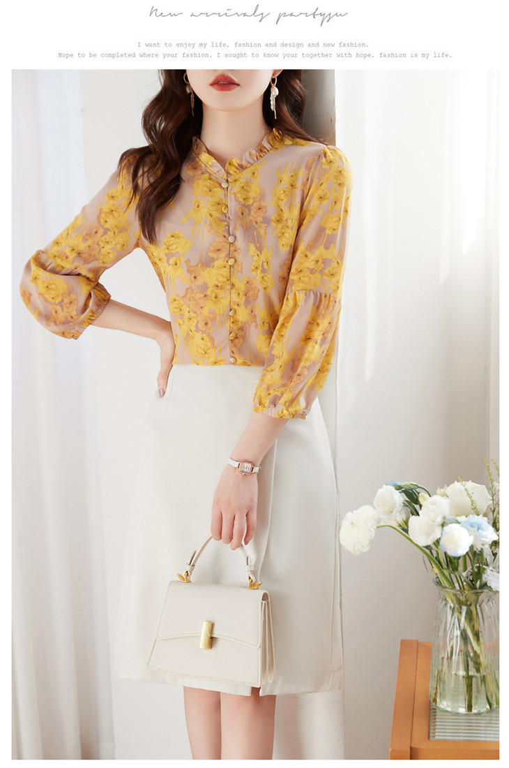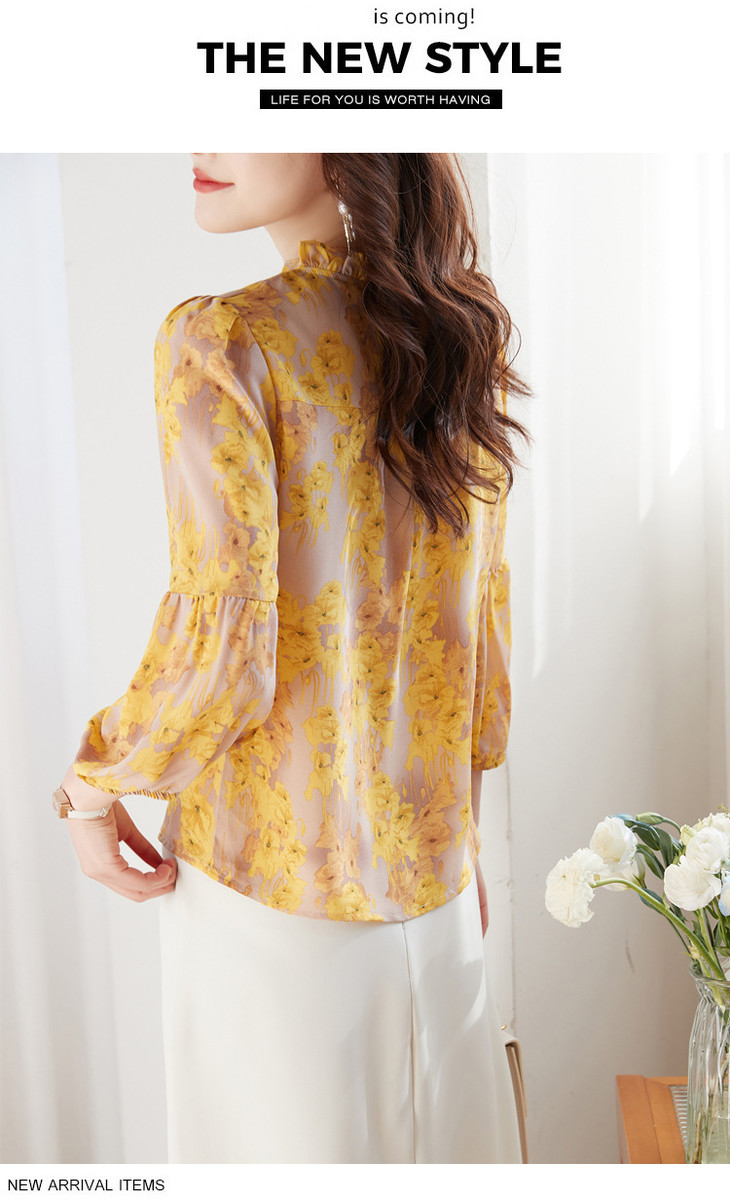 印花七分袖衬衫新款时髦洋气小衫气质宽松上衣雪纺AHM-dtyx2163