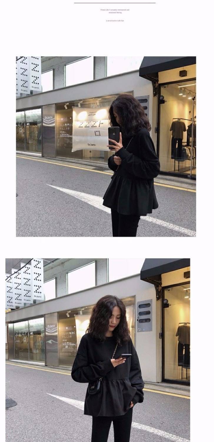 卫衣女薄秋装新款裙摆假两件外套韩版潮ins学生宽松长袖上衣