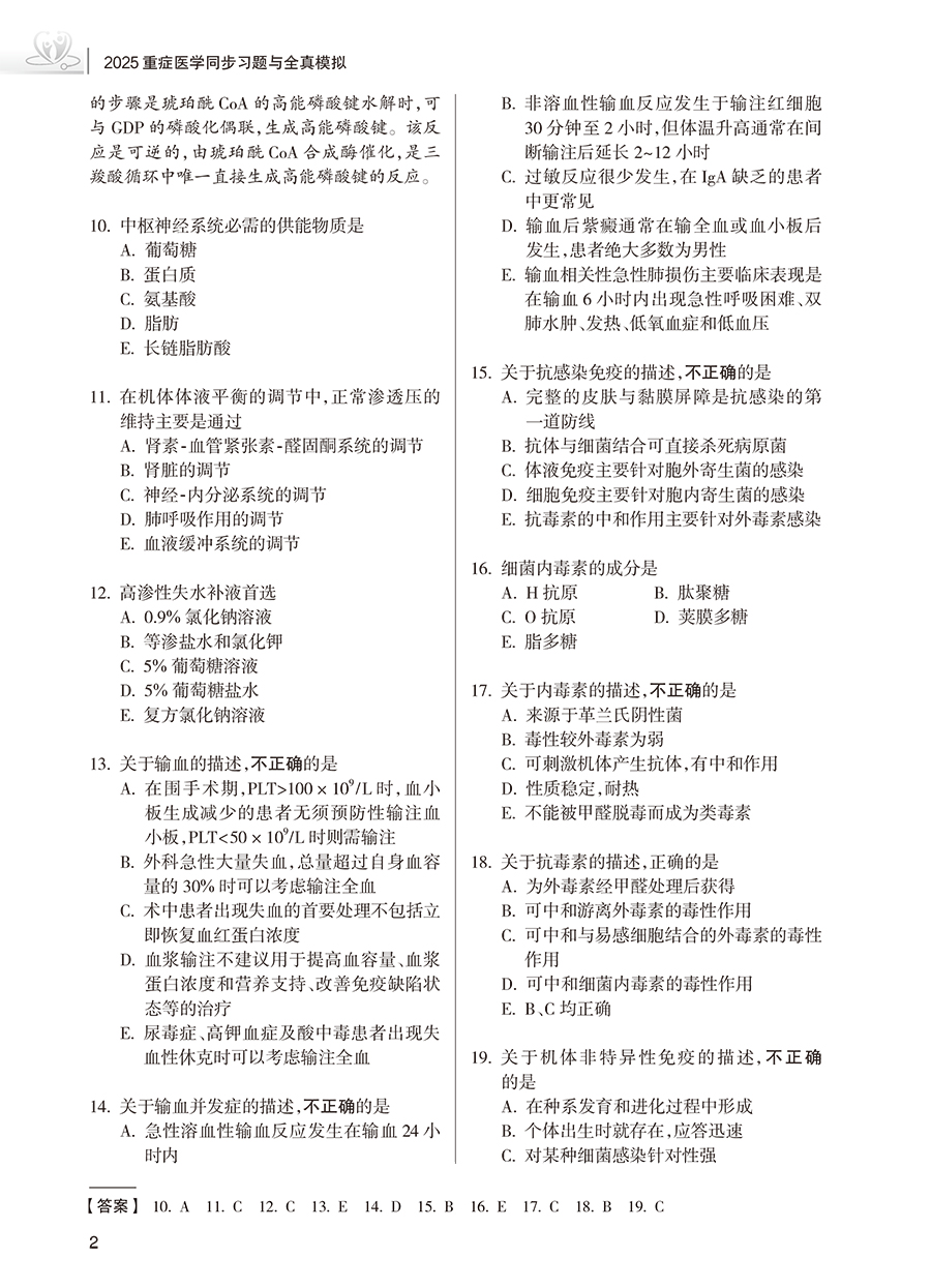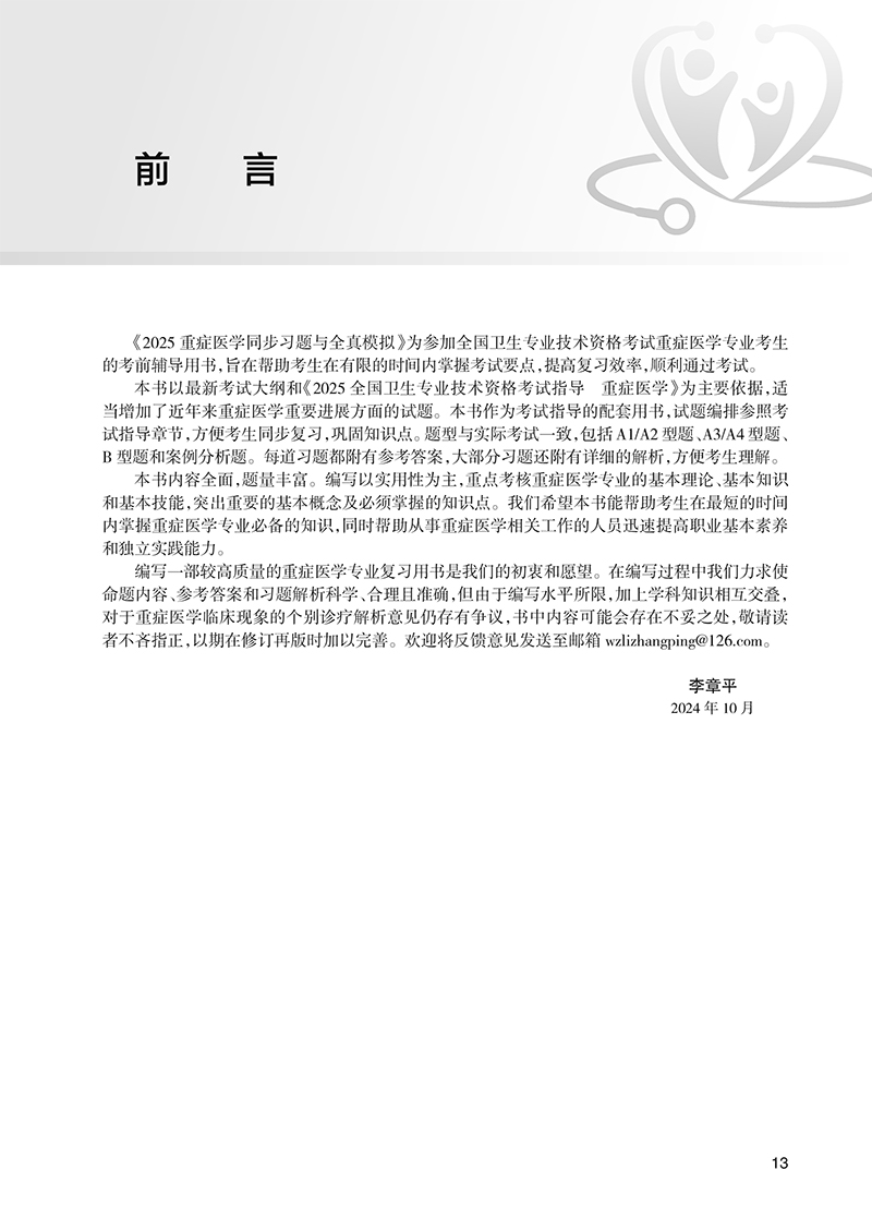 2025重症医学同步习题与全真模拟 全国卫生专业技术资格考试习题集丛书 李章平 主编 适用专业重定医学(中级) 9787117371940人卫