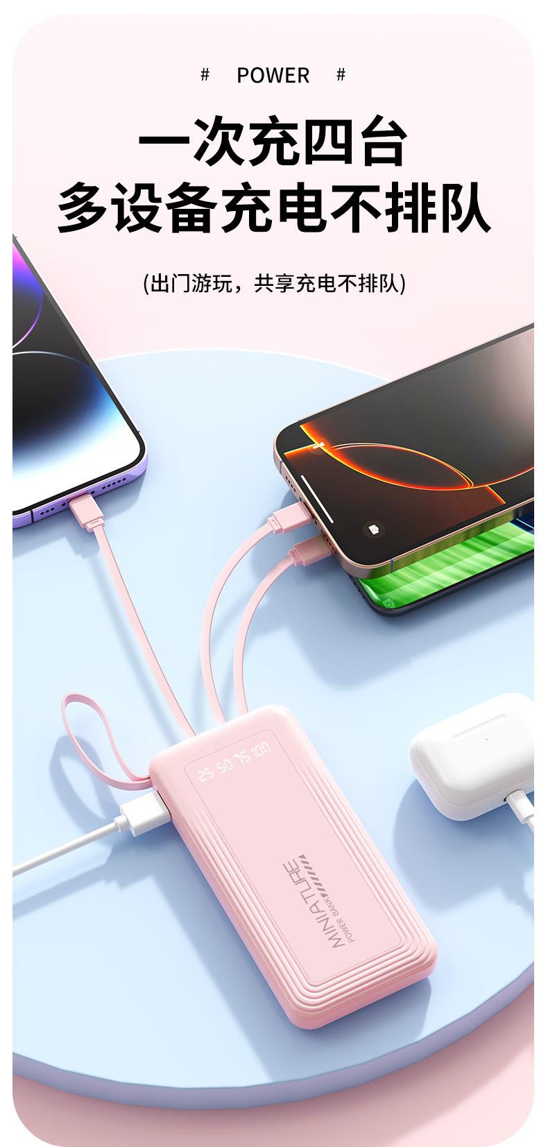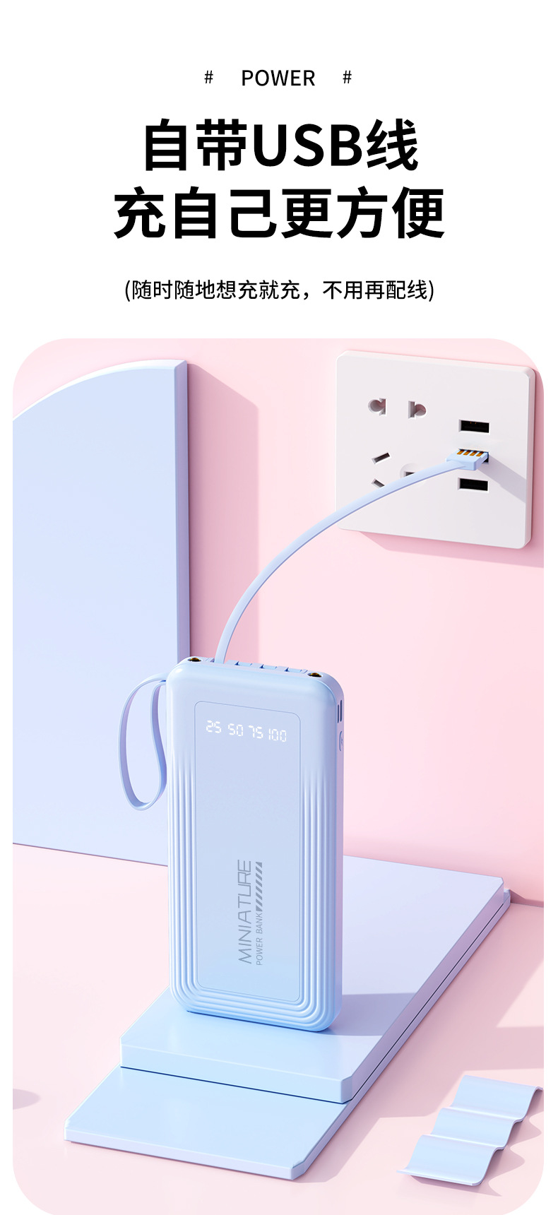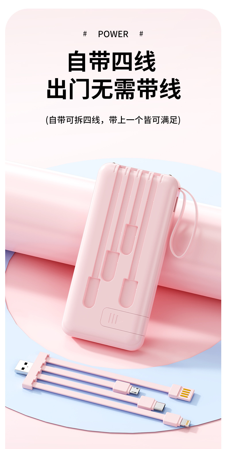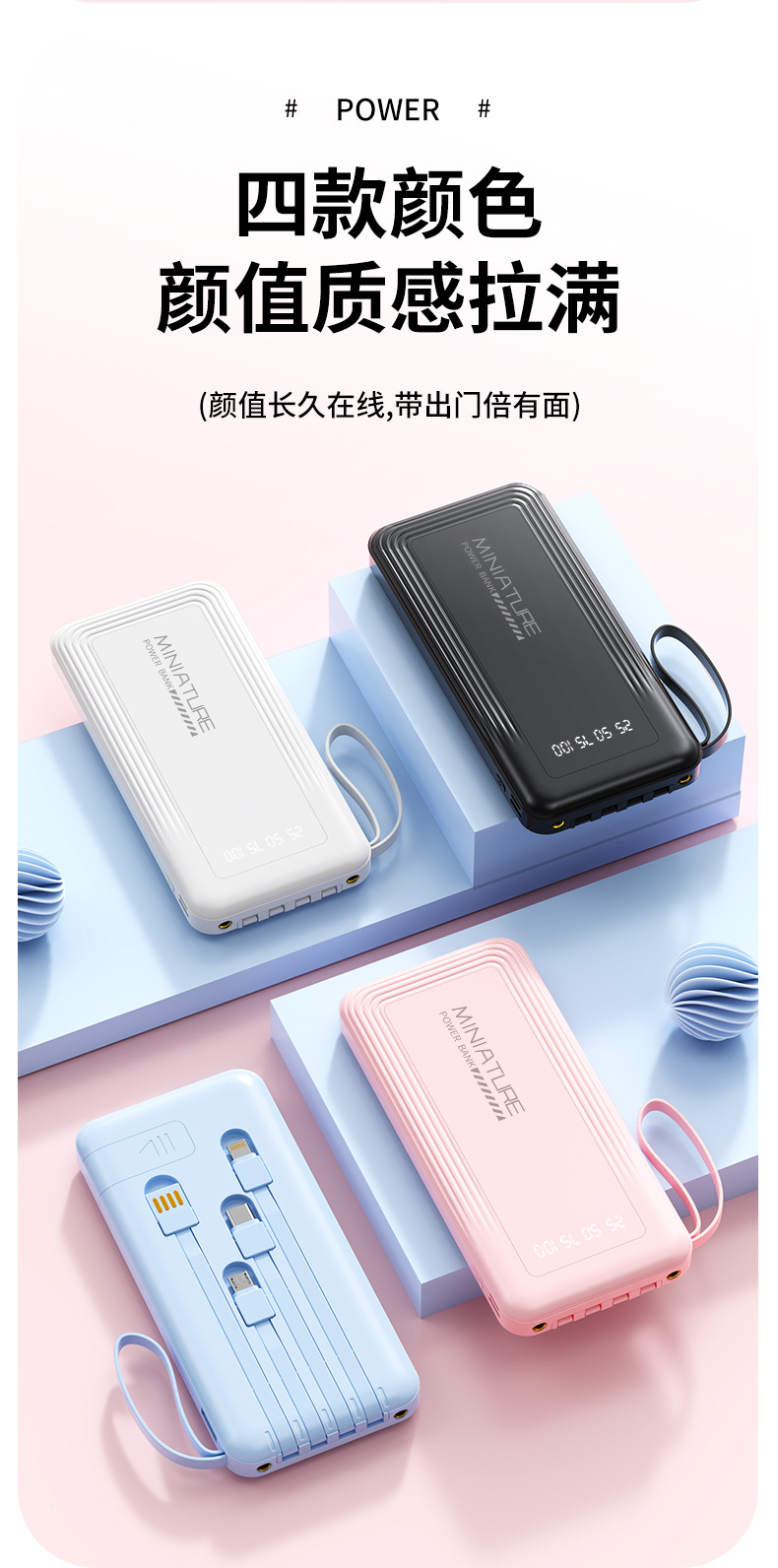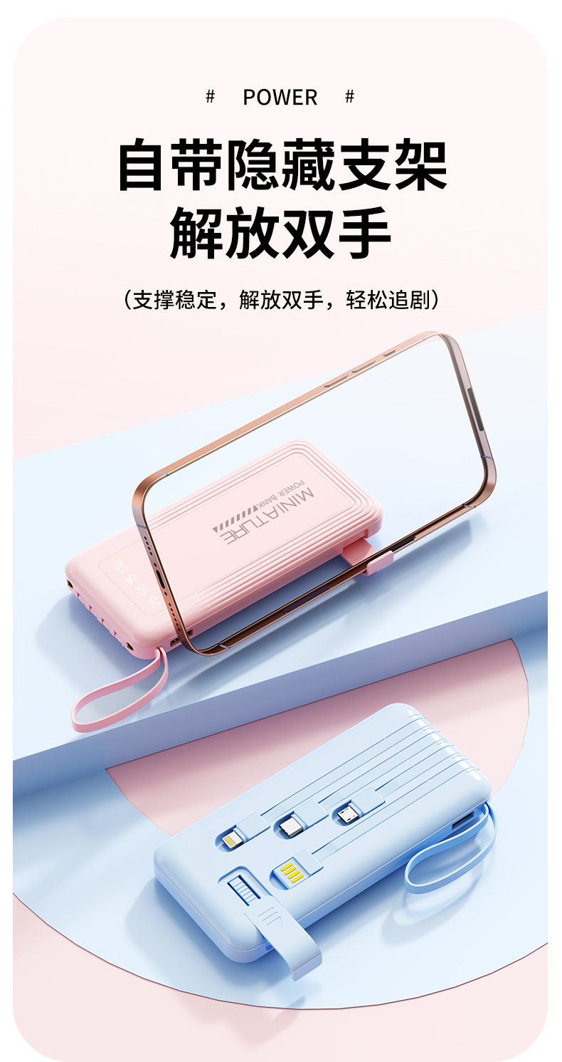 【新国标3C认证】新款自带线充电宝带支架 20000毫安大容量移动电源礼品。ry