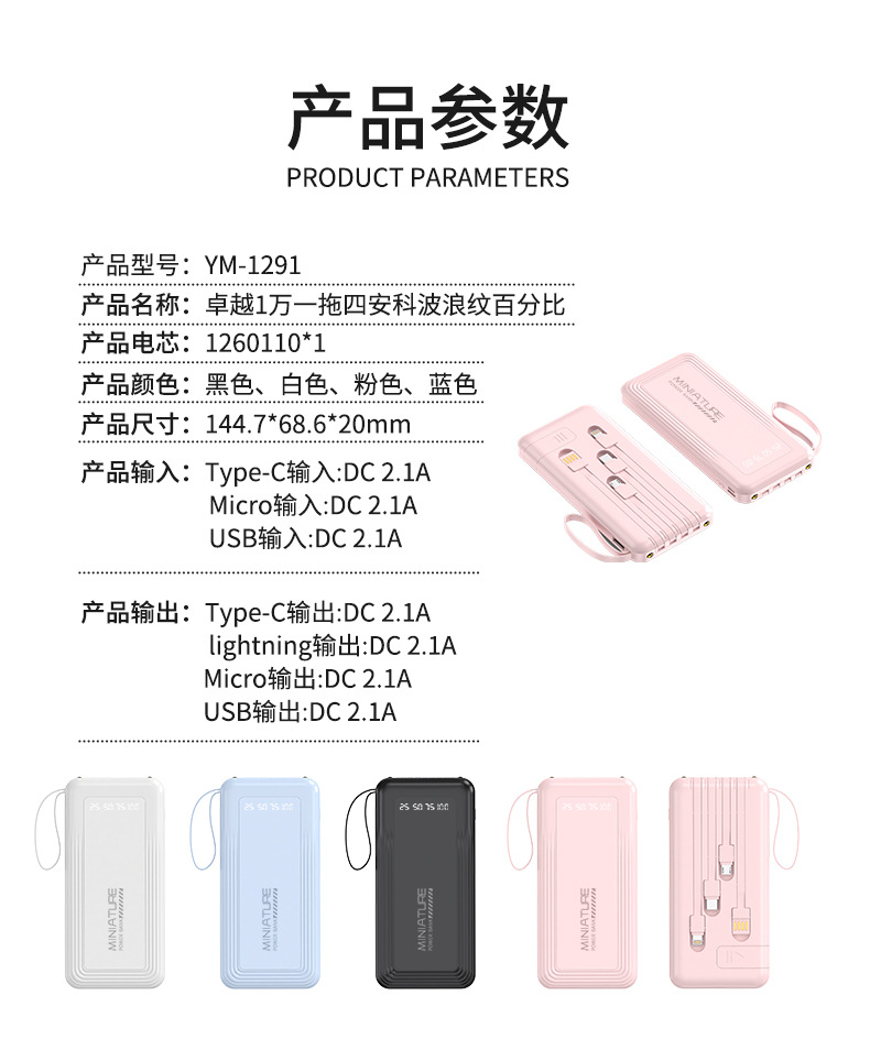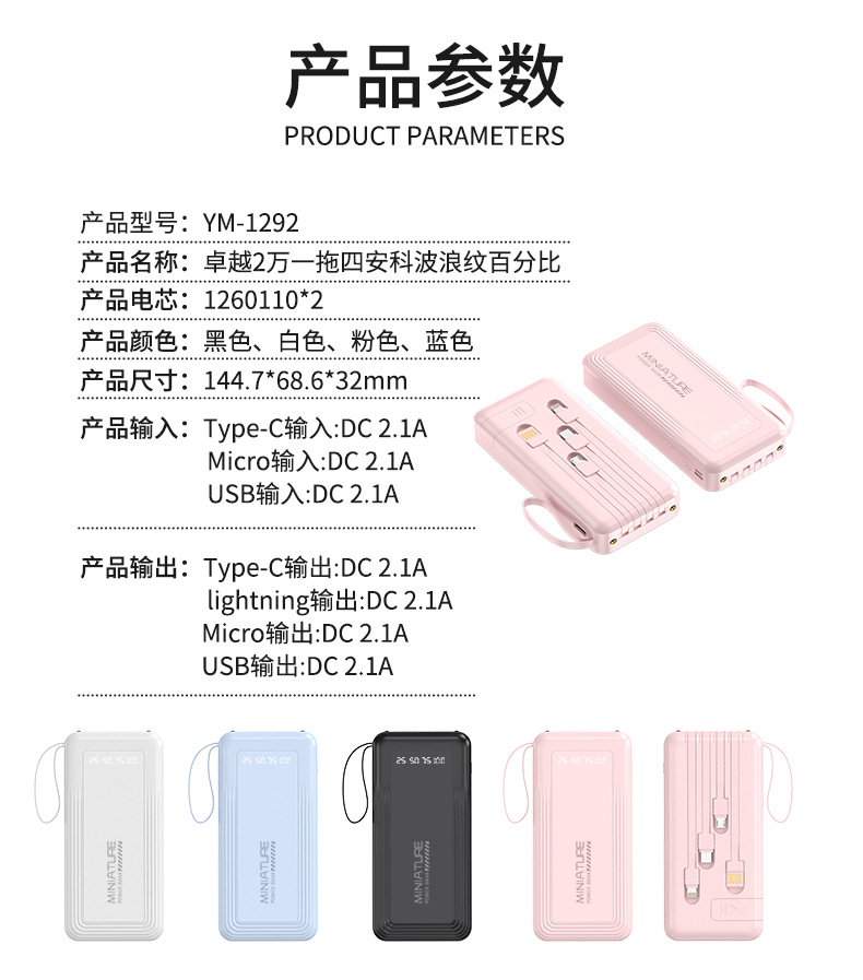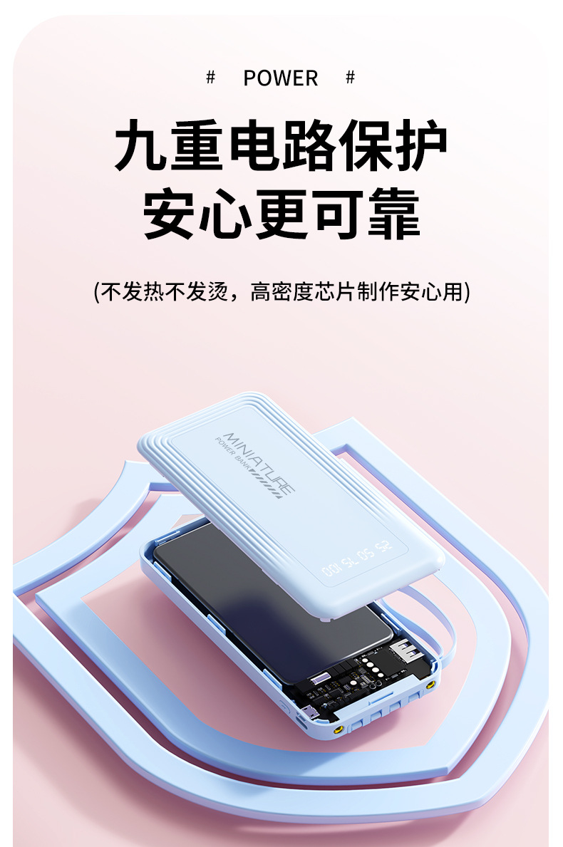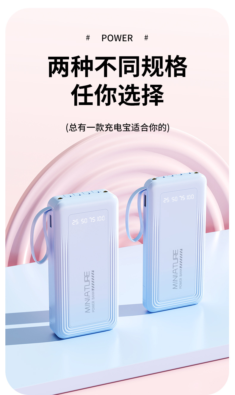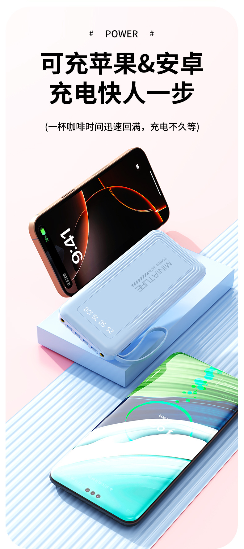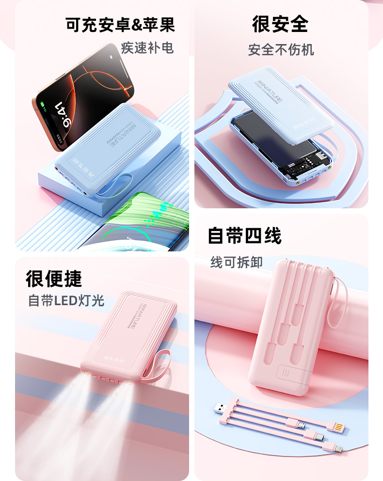 【新国标3C认证】新款自带线充电宝带支架 20000毫安大容量移动电源礼品。ry