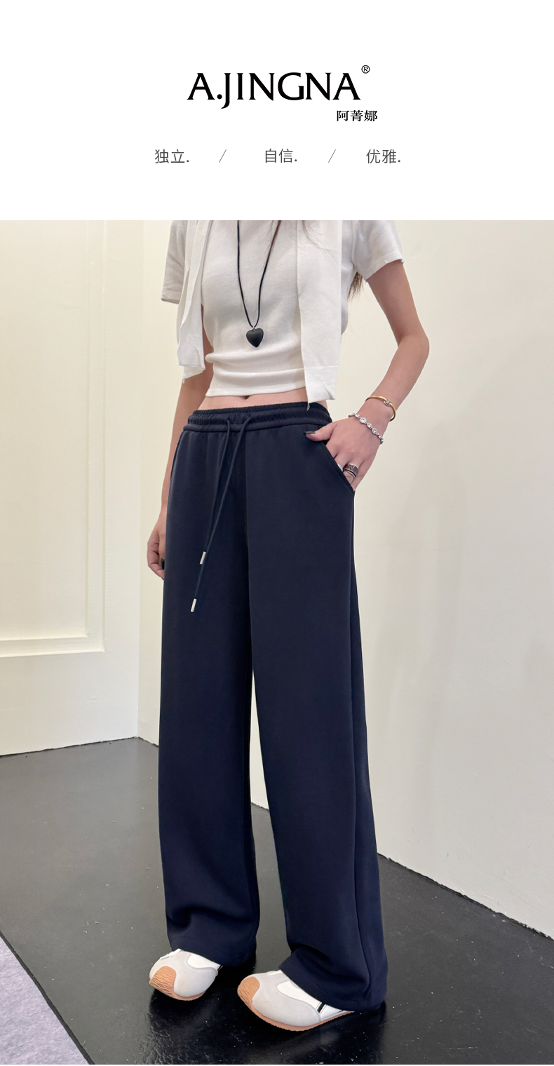 【直筒阔腿】阿菁娜春夏新款直筒阔腿裤修饰腿型遮胯腿粗抽绳松紧腰不勒腹F31C210036