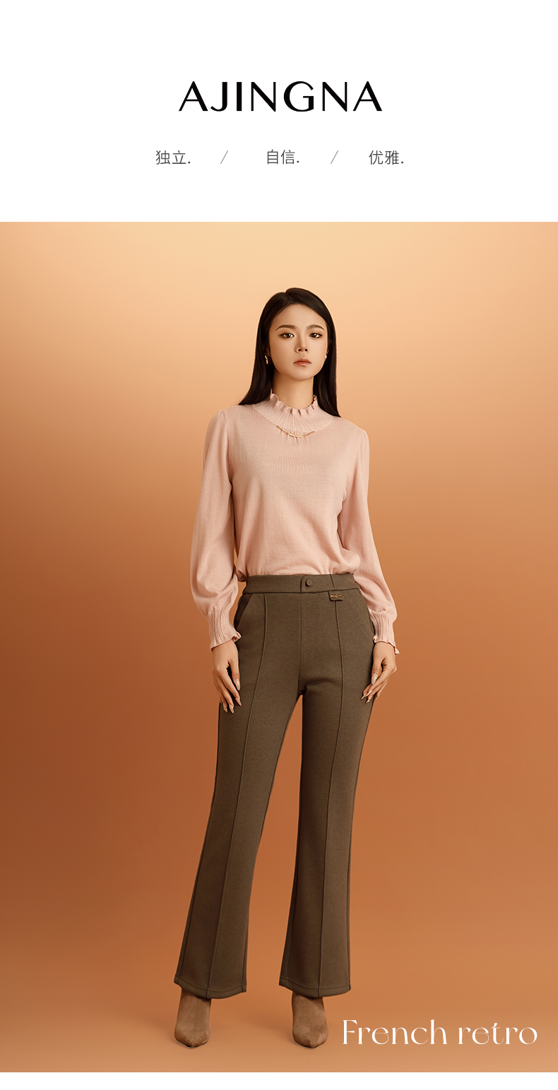【商场同款】阿菁娜2024冬季新品时尚弹力修身微喇裤A30D210102