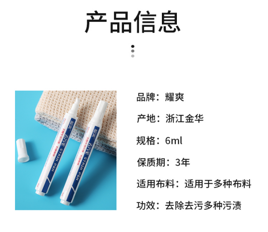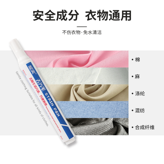 【使用方法】先用纸巾或抹布去除衣物表面多余的污渍/按压笔尖使溶液流出/用笔尖轻轻揉搓污渍区域/用湿布或湿纸巾抹走多余的溶液。