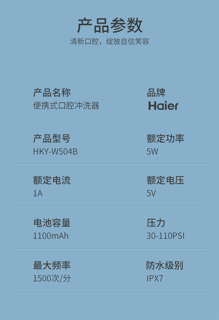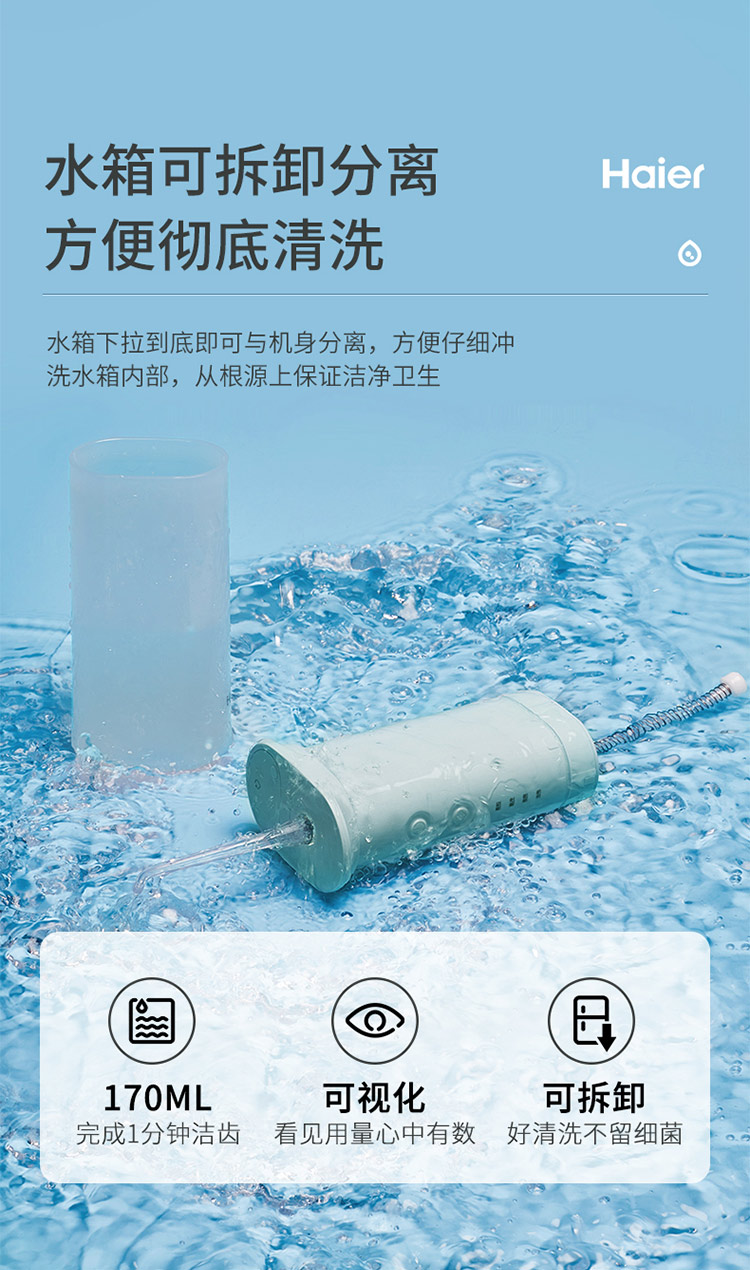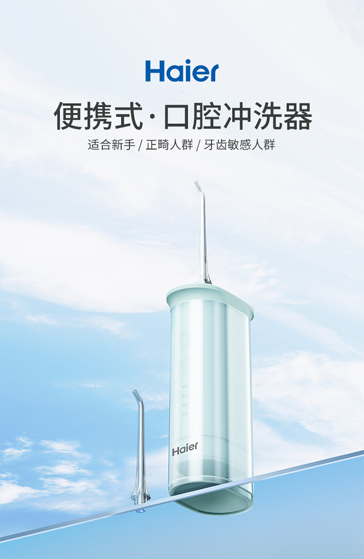 海尔冲牙器HKY-W504C水牙线洁牙器家用电动便携式旅行清洁口腔牙齿正畸高压脉冲
